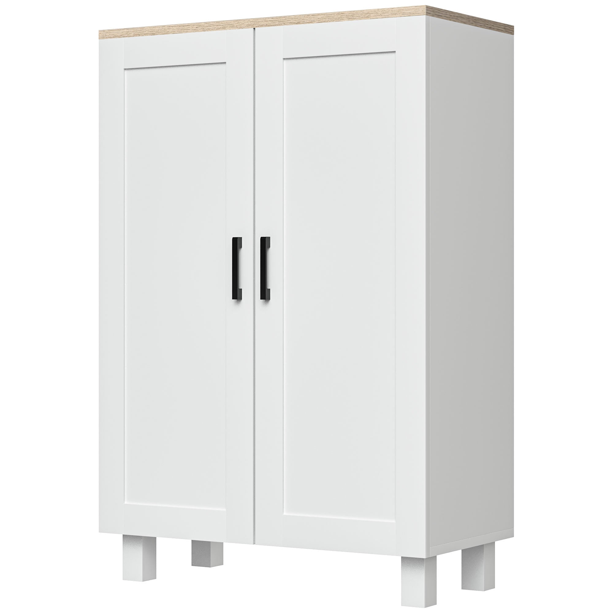 HOMCOM Модерен шкаф за всекидневна с 2 врати, регулируема рафт и повдигната основа за кухня, трапезария, коридор и спалня с устройство против преобръщане 60x30x90 см Бял