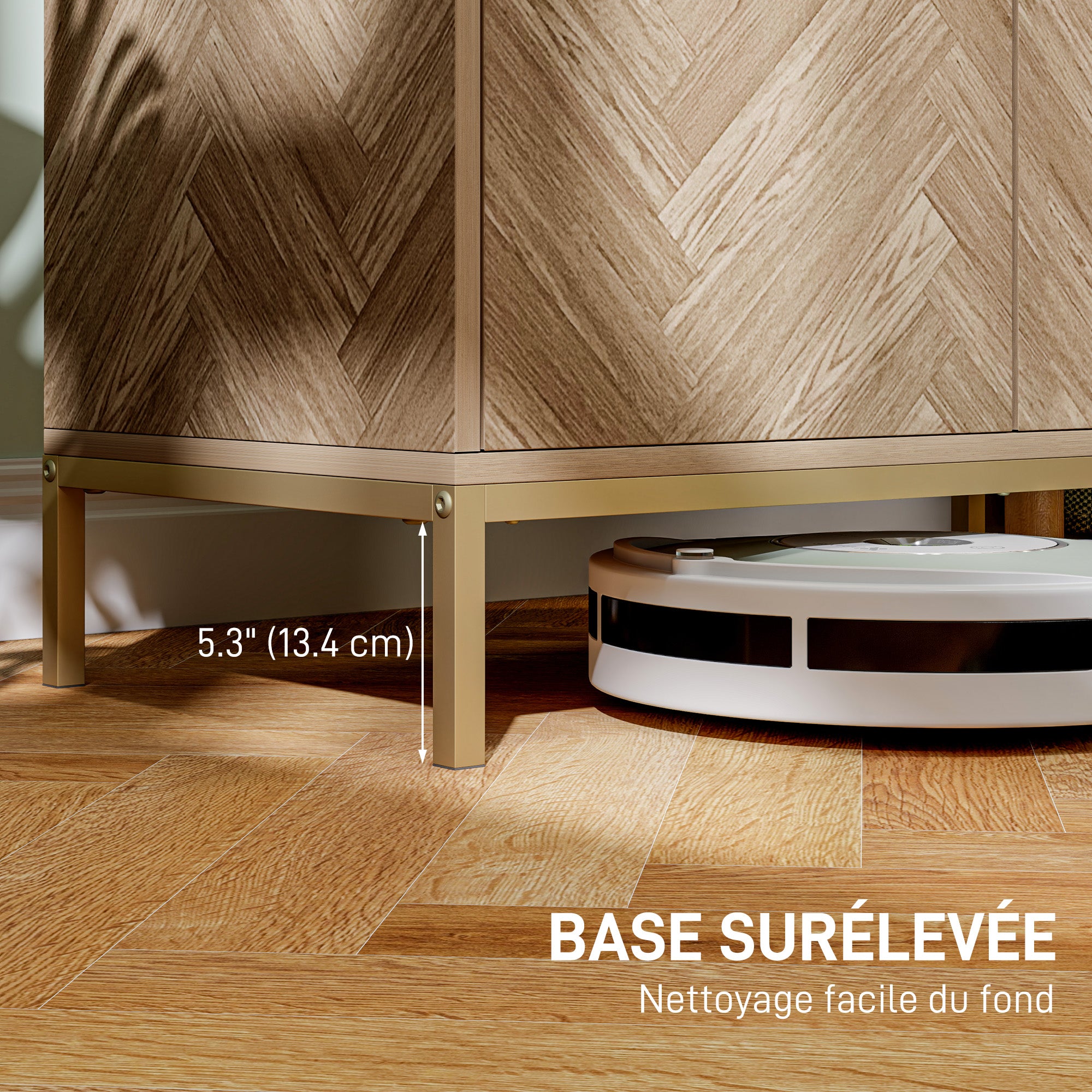 HOMCOM Съвременен графичен дизайн на бюфет с 2 шкафа и регулиращи се рафтове - Бяла дървесина с златен метал