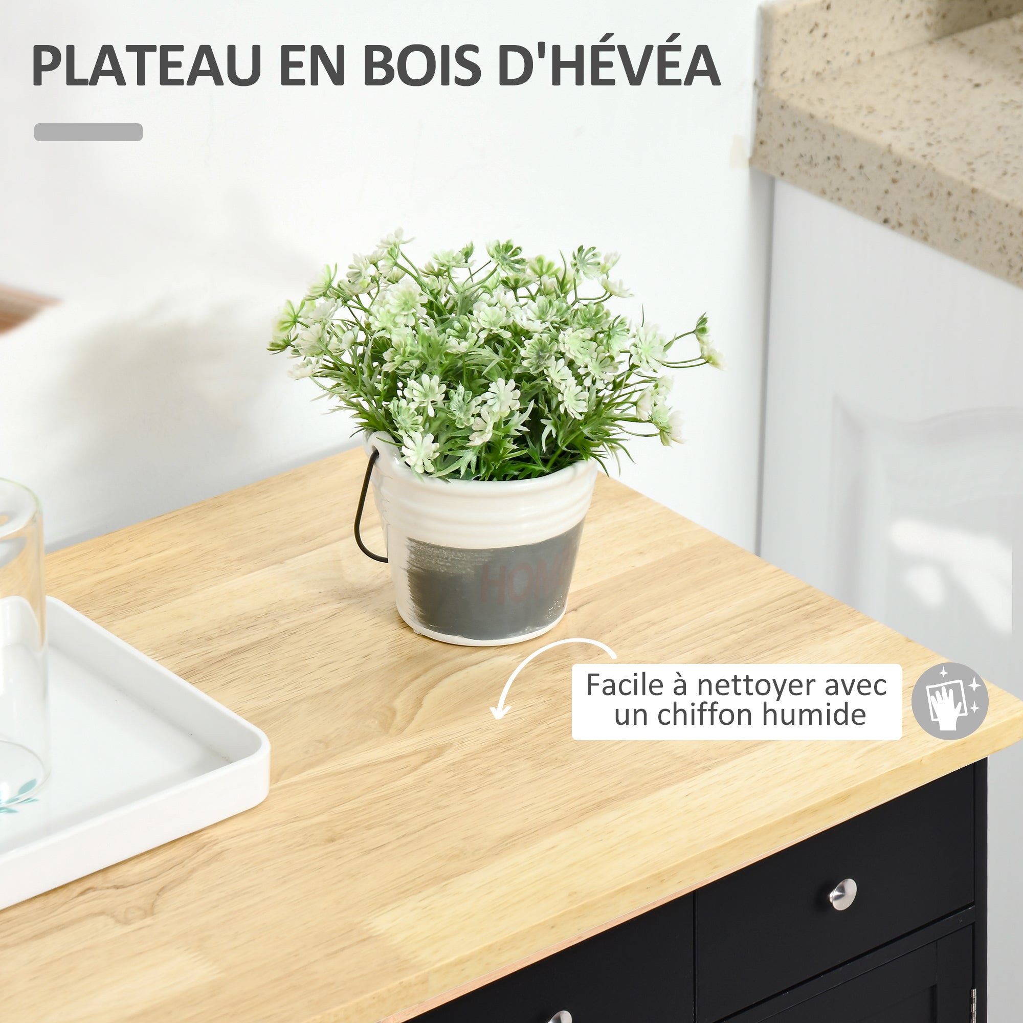 HOMCOM Съхранителен шкаф, Стенен шкаф, Кухненски шкаф, 2 шкафчета, Регулируема рафт, 2 чекмеджета, Съвременен стил, за Хола, Кухня, Трапезария, 90 x 30 x 75.5 см, Естествено черен