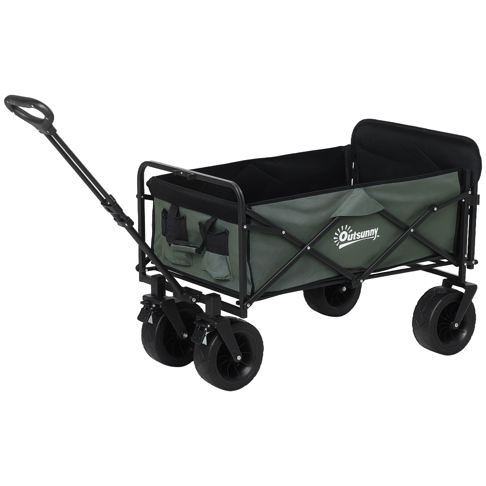 Folding Cart, Transport Cart with Adjustable Handle, Beach Cart, Garden Cart with Folding Table, Load Capacity up to 120 kg, Green
