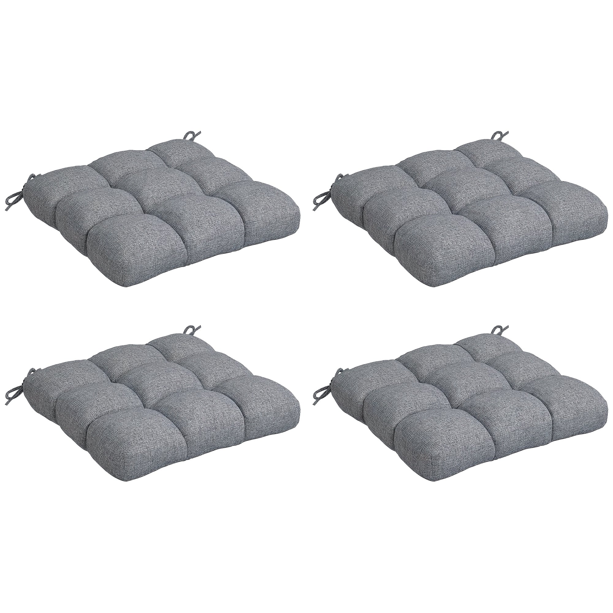 Комплект възглавници за столове Outsunny 48x48x10 см, комплект от 4 водоотблъскващи и анти-UV възглавници за градински столове с 2 сиви фиксиращи връвчици