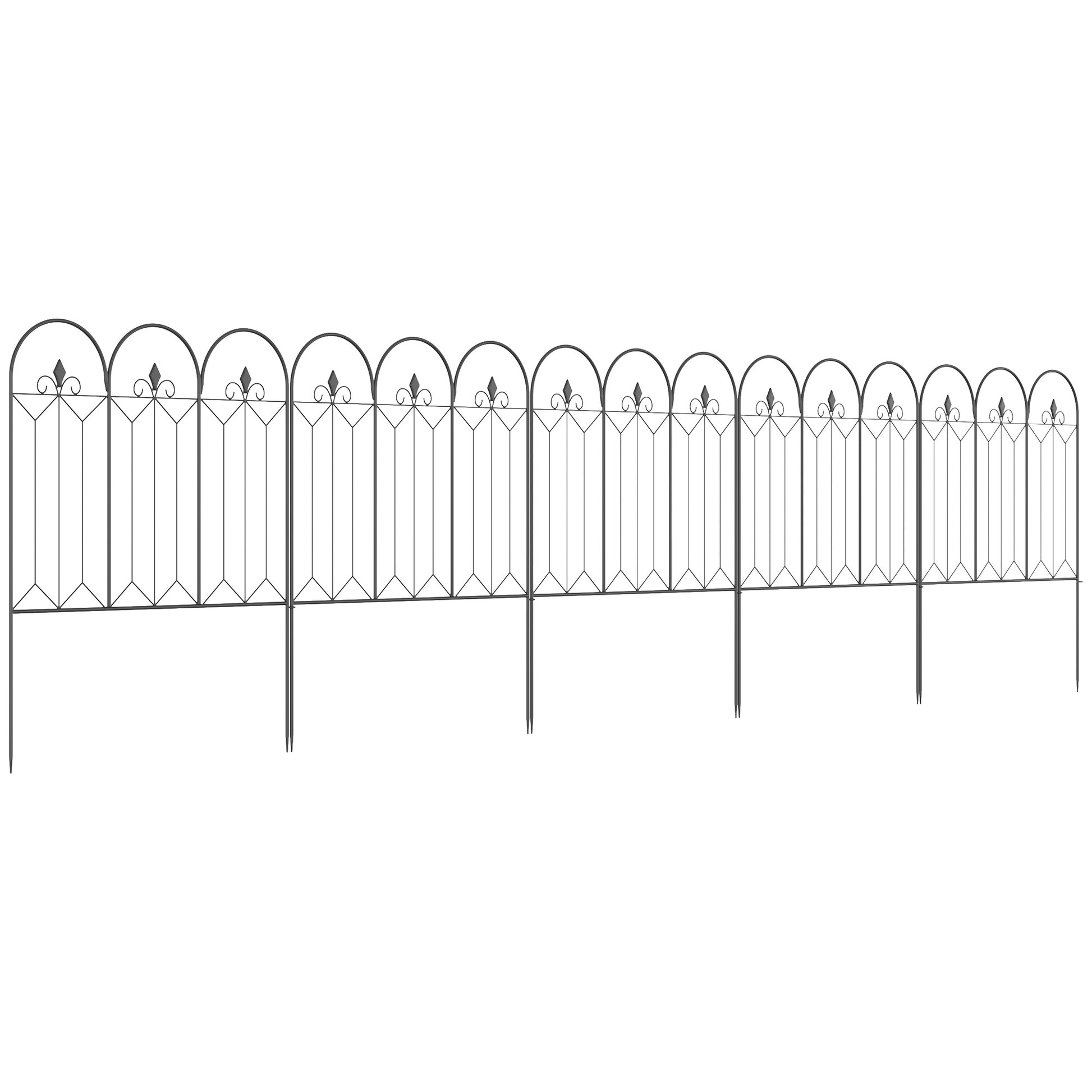Декоративни метални градински огради Outsunny 305x79.5 см, комплект от 5 огради, комбинирани в животноводна бариера за веранда и тревни площи, черни