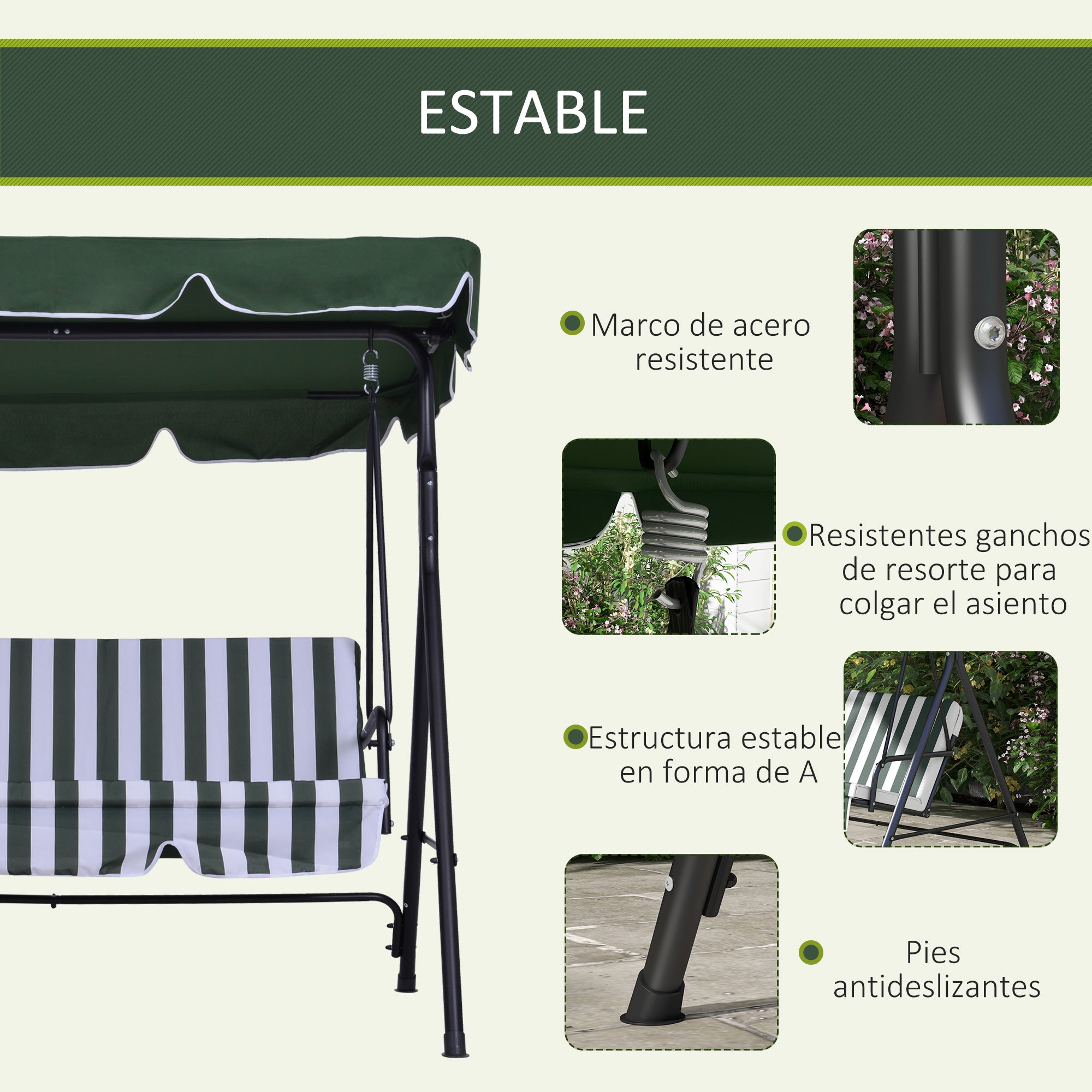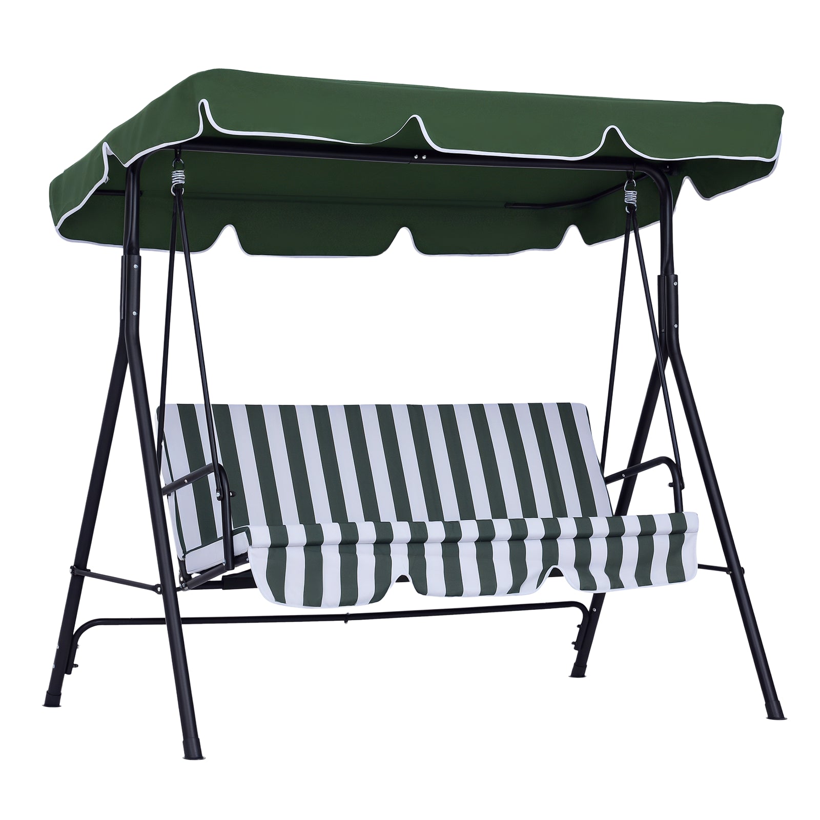 Градинска люлка Outsunny за 3-ма с регулируем сенник и стоманена рамка за балкон, тераса, пато - Натоварване 200 кг, 172x110x153 см, Зелен
