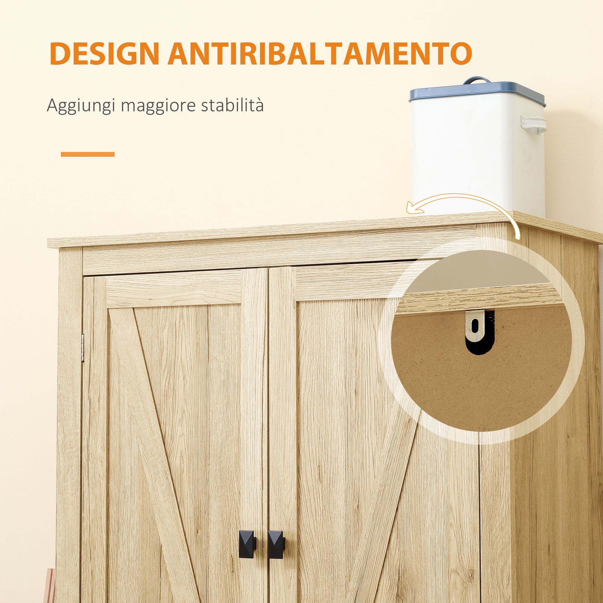 HOMCOM Модерен шкаф с 4 врати и регулируеми рафтове, Дървен кухненски шкаф, 80x40x182 см, Дъбово цвете