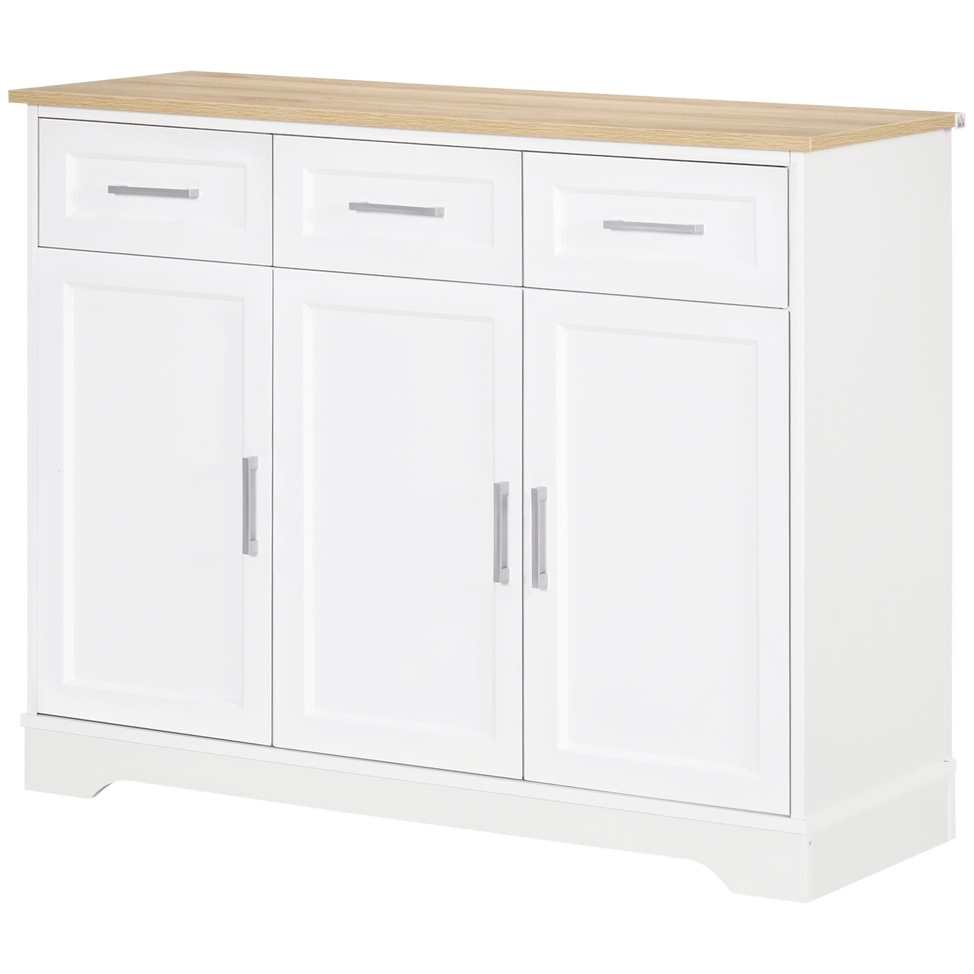 HOMCOM Модерен шкаф за кухня и всекидневна от MDF и чипборд с регулируема полица, многофункционален шкаф с 3 чекмеджета и 3 врати, 101x39x82 см, Бял