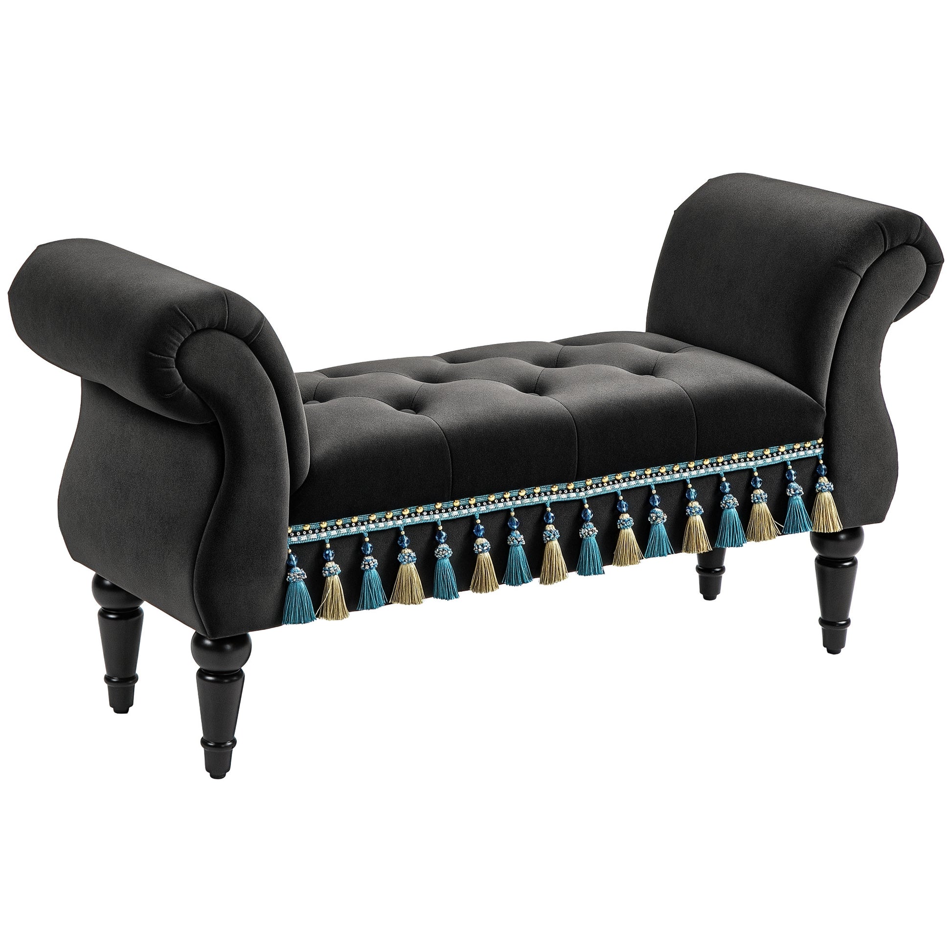 HOMCOM Паднат парапет, Велюров вид, Луксозна леглова пейка с дървени крака, Пейка за коридор за спалня, до 150 кг товароносимост, Тъмен сив, 117 x 40 x 58 см