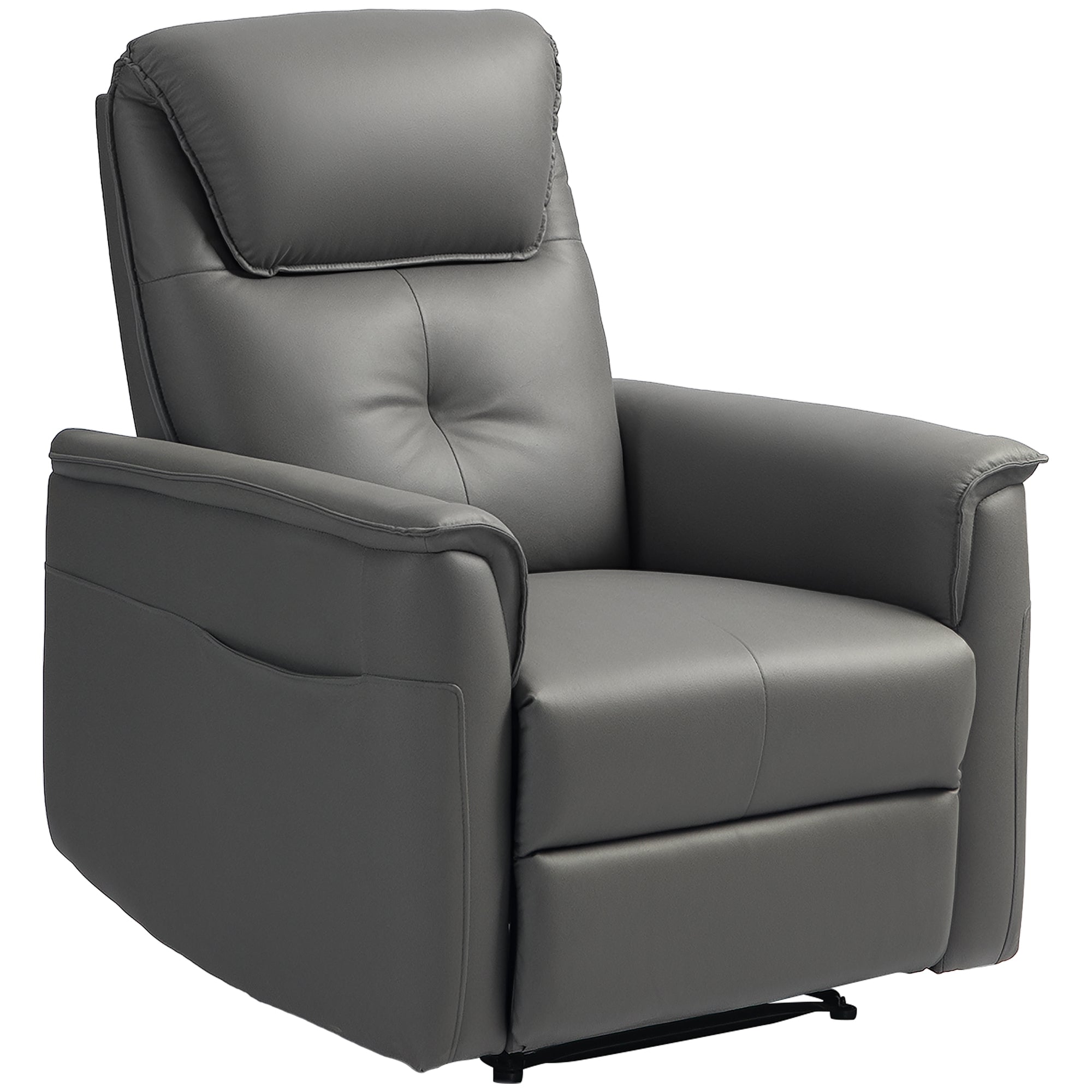 HOMCOM Реклайнер, Телевизионен фотьойл с функция за наклон, Ядро от пружини, Обзаведен телезионен фотьойл с място за крака, Страничен джоб, Микрофибър за всекидневна, Спалня, Светло сиво