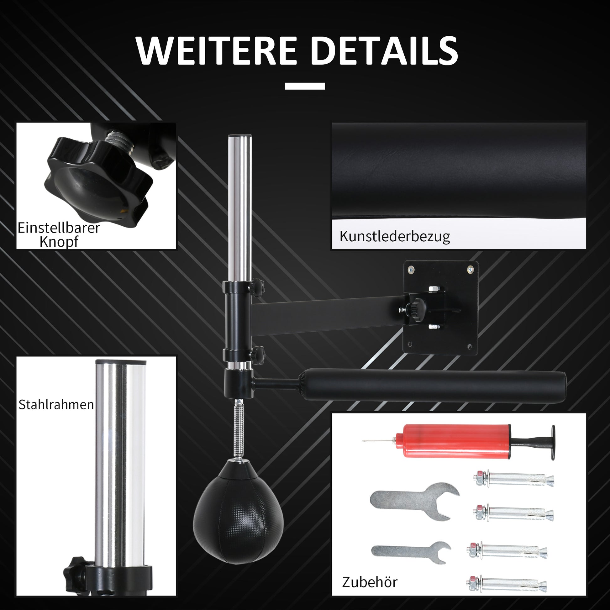 HOMCOM Сгъваем ринг за боксови тренировки с монтаж на стена и въртяща се рефлексна лента, регулируема по височина за юноши и възрастни