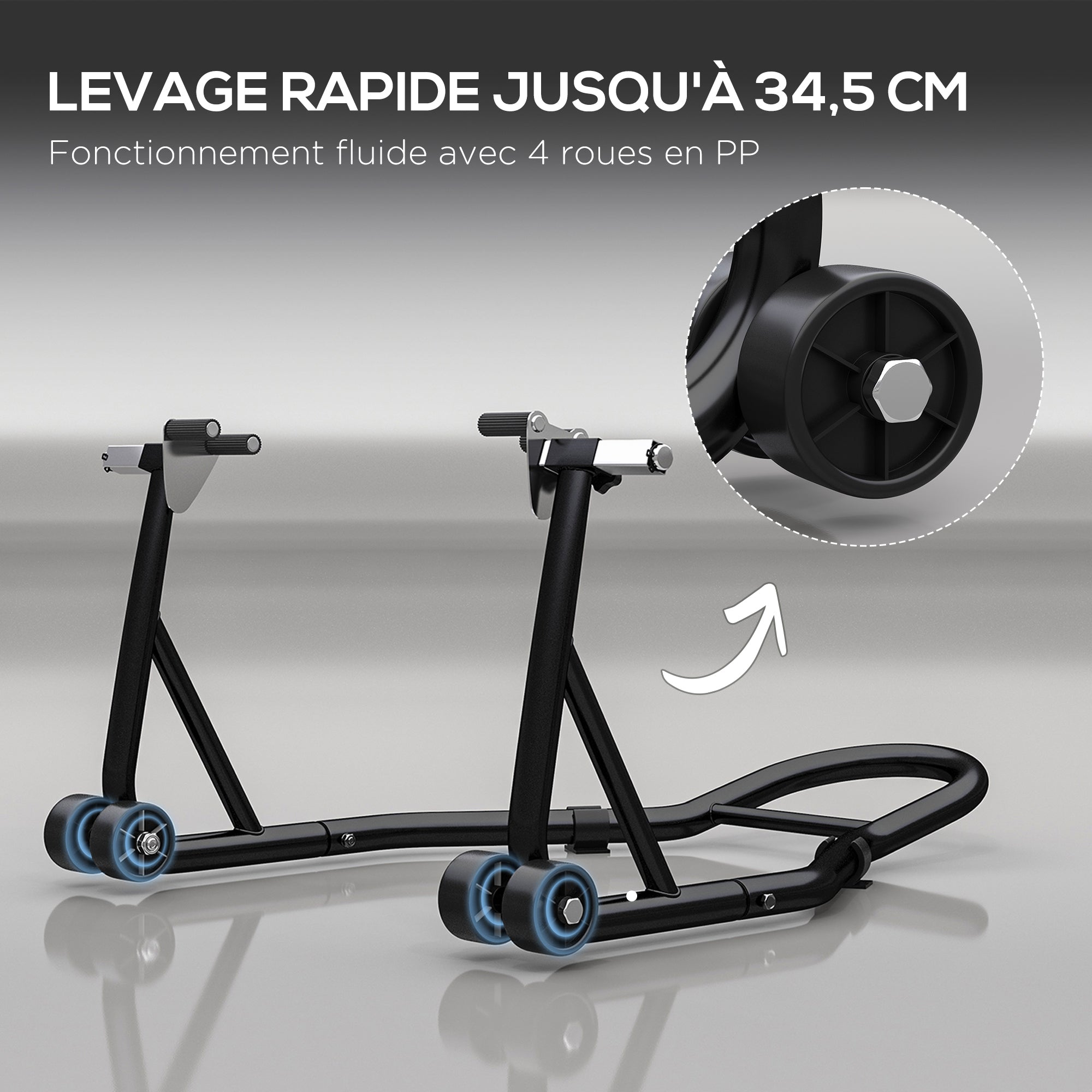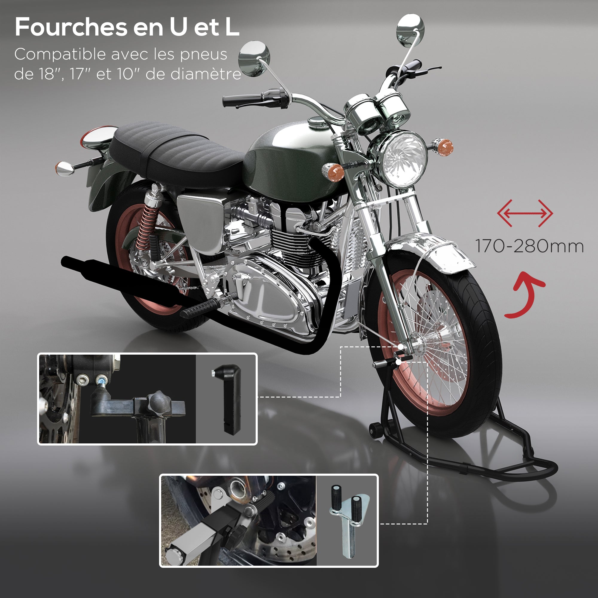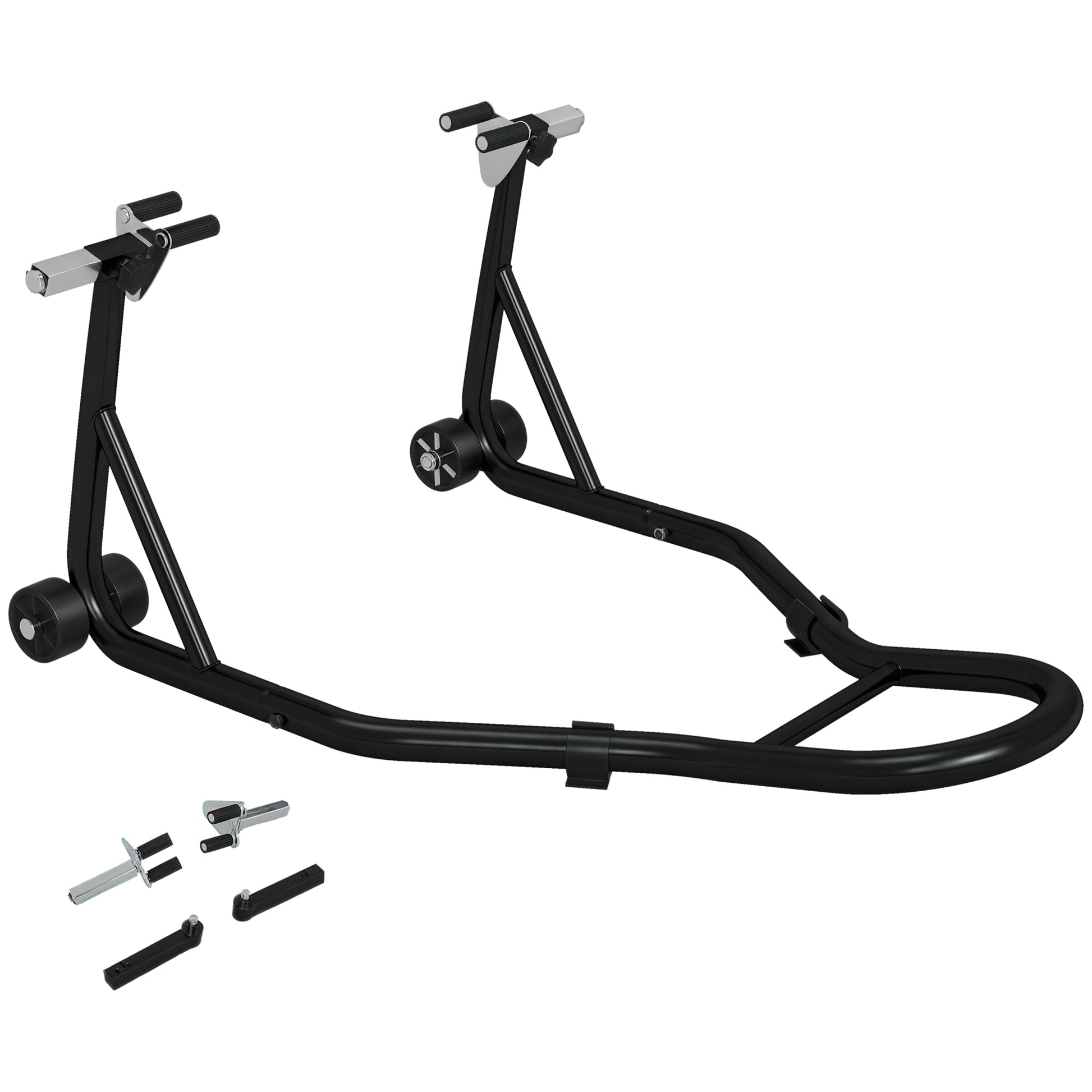 HOMCOM Стенд за предни колела на мотоциклет, повдигащ стенд с U и L-образен swingarm, универсален стоманен стенд за работилница в черен цвят
