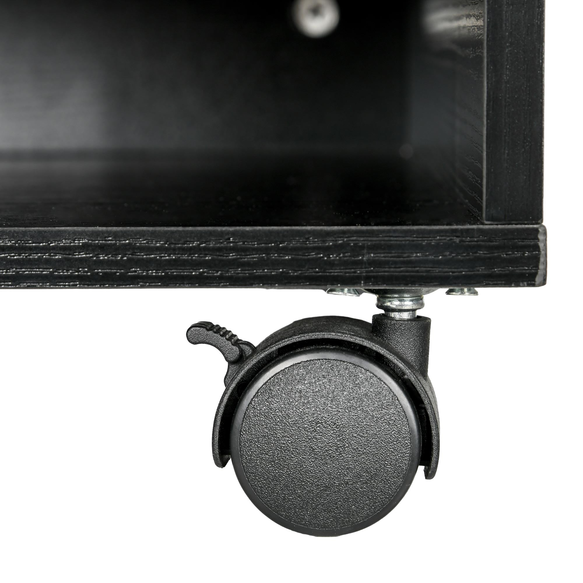 HOMCOM Стойка за принтер с 2 рафта, Дървен шкаф за офис и учене с колела, 47x40x27.5 см, Черен