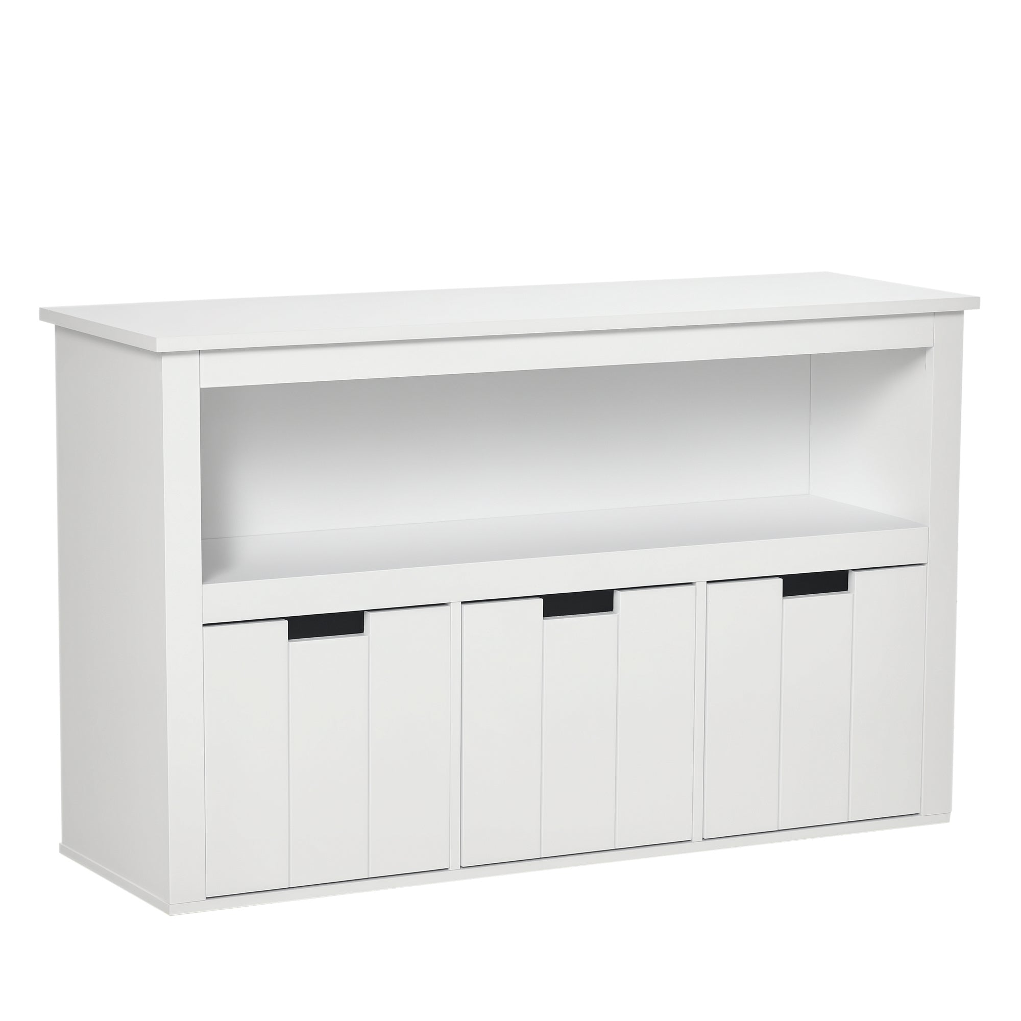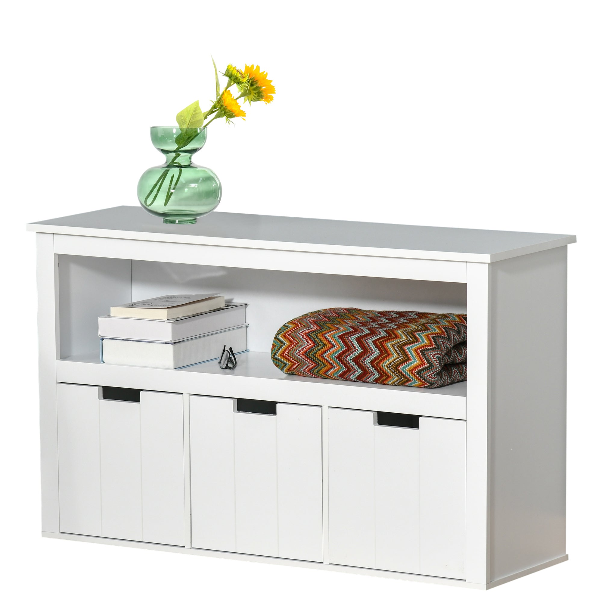 HOMCOM Страничен шкаф за всекидневна с 3 подвижни чекмеджета и отворени рафтове за книги и играчки, помощен складов шкаф за спалня и кухня 102x33x61.5 см Бял