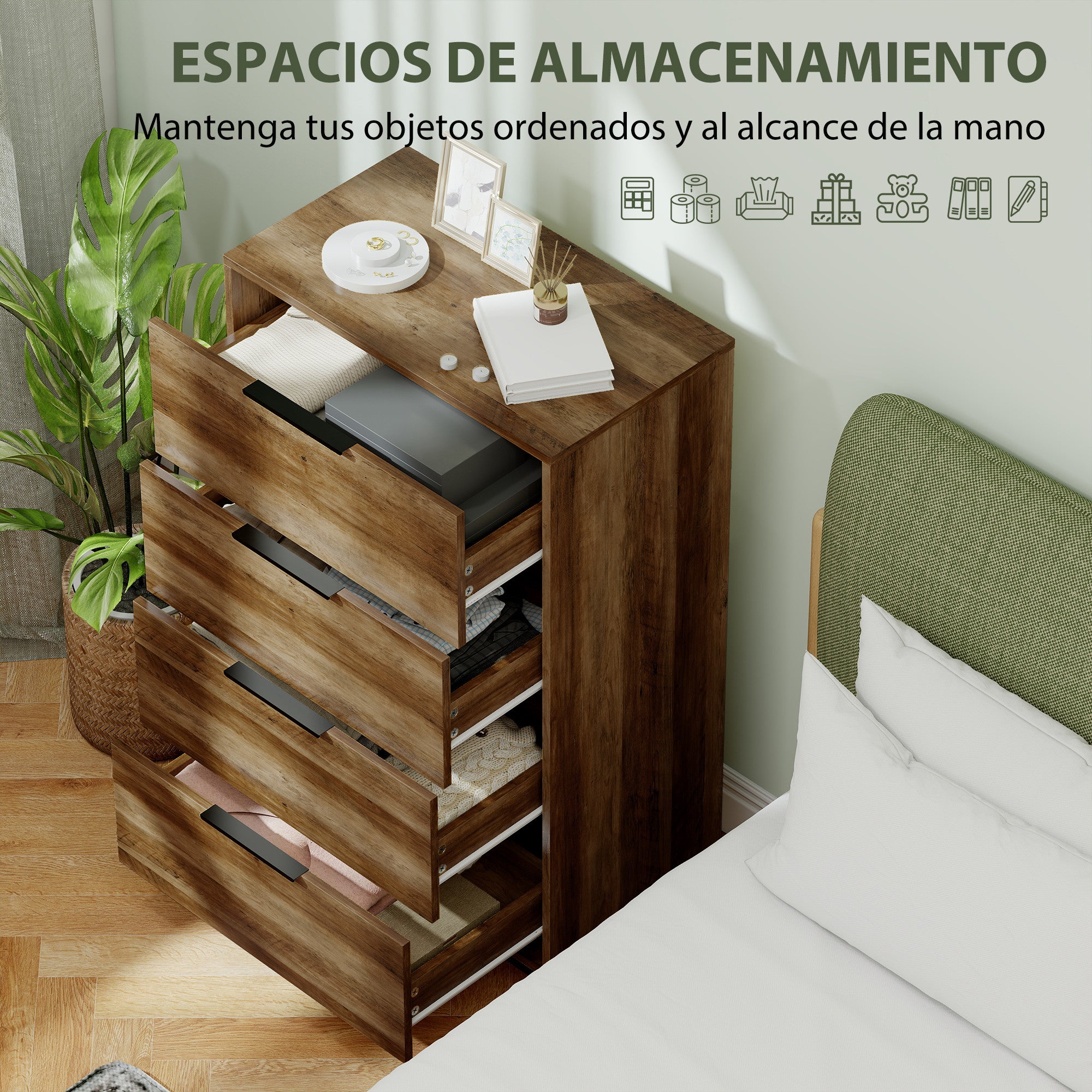 - - ОГРОМНО И КОМПАКТНО СЪХРАНЕНИЕ: С четири големи чекмеджета и дълбочина само 35 см, този шкаф максимизира пространството за съхранение, заемайки само 0.2 м². Високият и компактен дизайн е идеален за малки помещения или компактни спални.