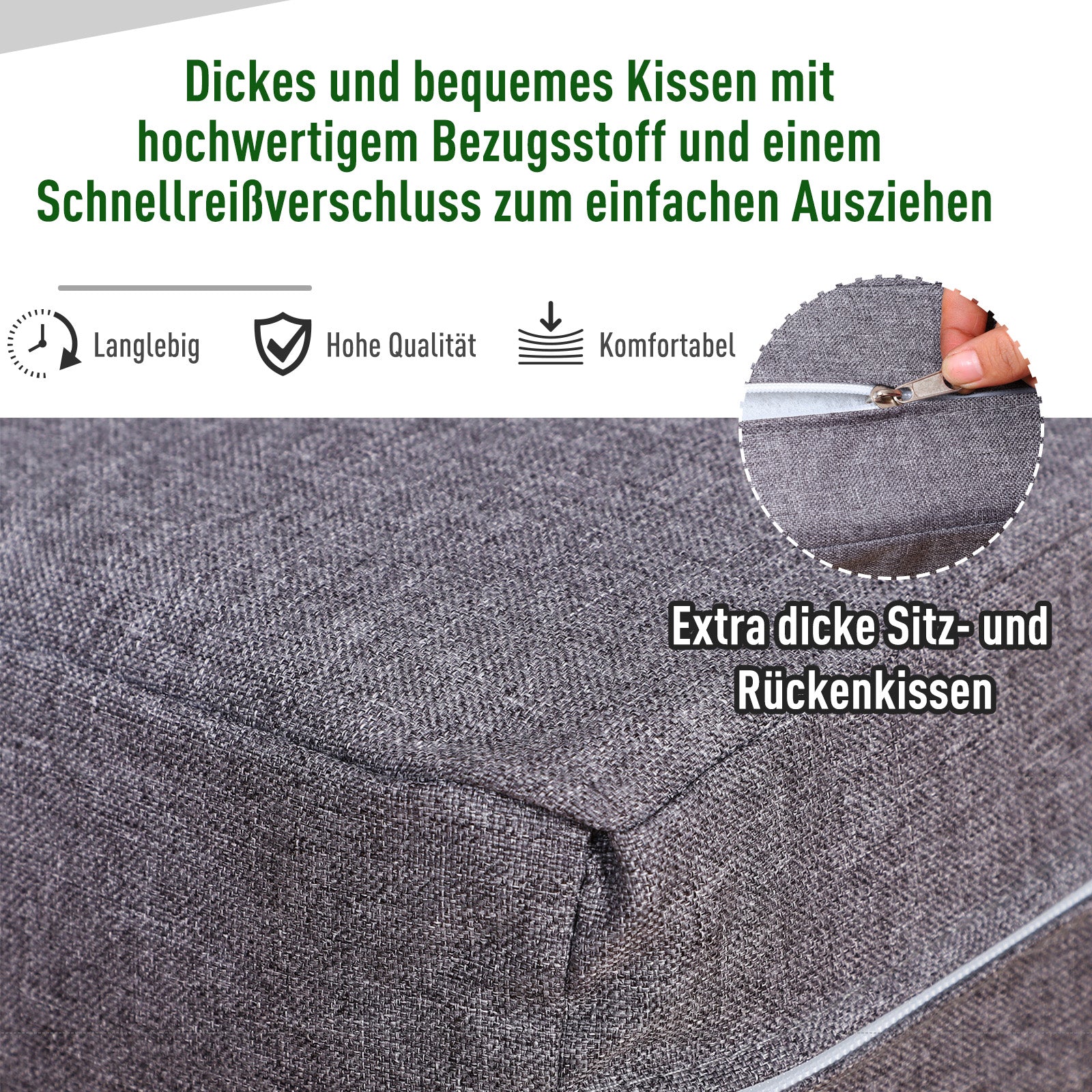 Комплект градински мебели Outsunny от четири части, seating group, диван с възглавници за сядане, маса с място за съхранение, полиестер, сив, 138 x 69 x 63 см