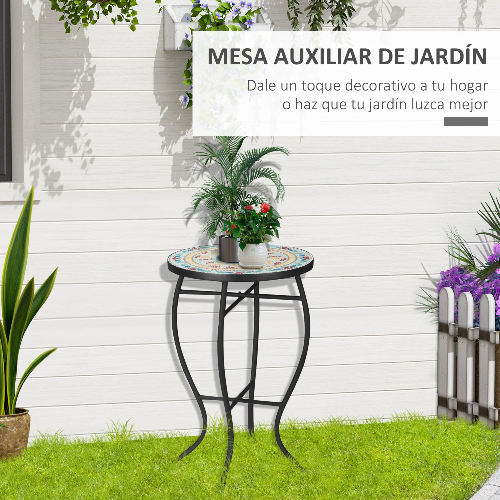 - - МНОГОФУНКЦИОНАЛНА: Благодарение на дизайна си, тази мозайкова маса може да се използва в различни пространства и за различни цели. Може да служи като странична маса в градината, но също така и като нощно шкафче, стойка за растения и др.