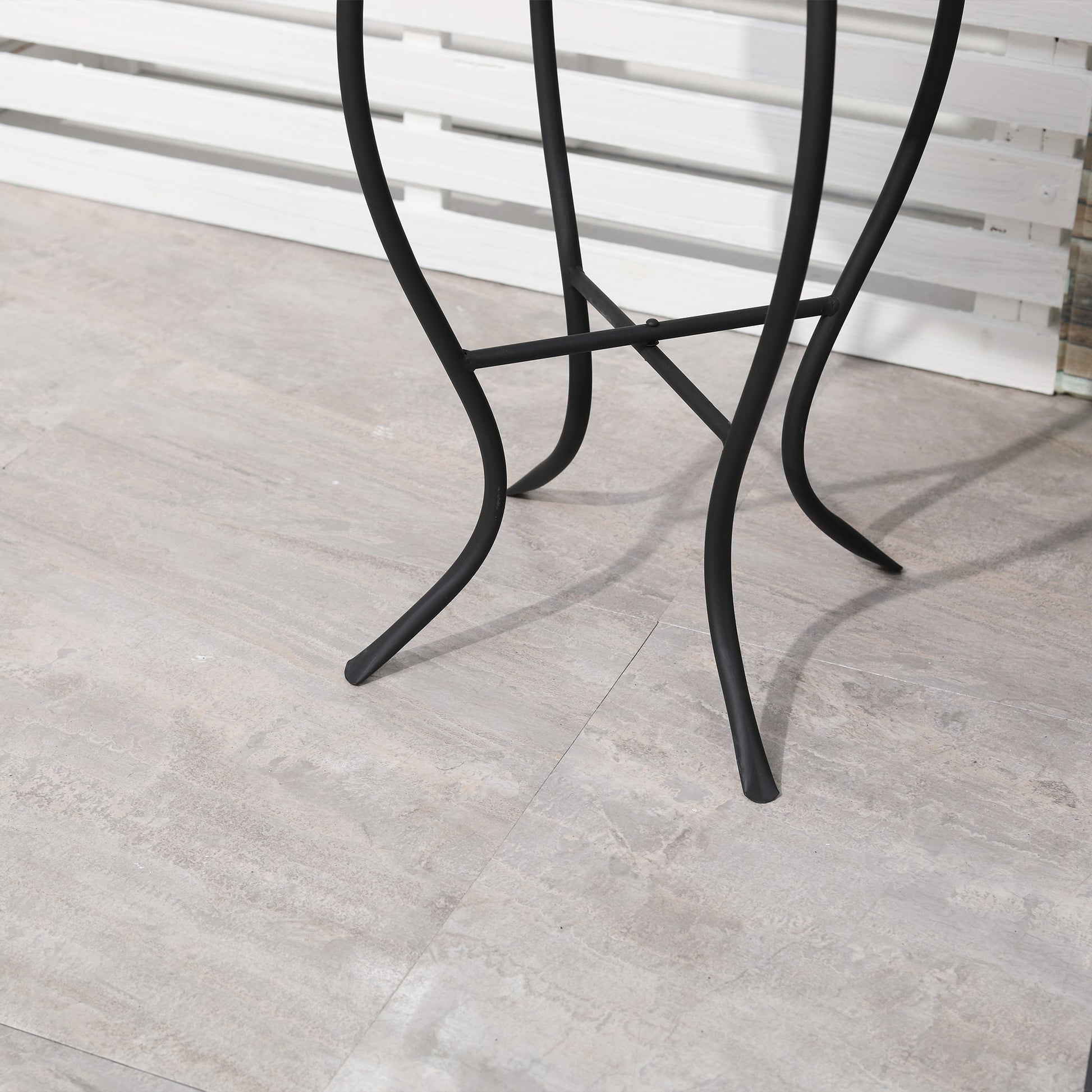 - - ЗДРАВА И СТАБИЛНА: Структурата на тази странична маса за открито е изработена от метал, с прахово покритие за увеличена устойчивост на атмосферни влияния и корозия. Извитата форма на краката не само добавя допълнителна елегантност на масата, но и подобрява нейната стабилност.