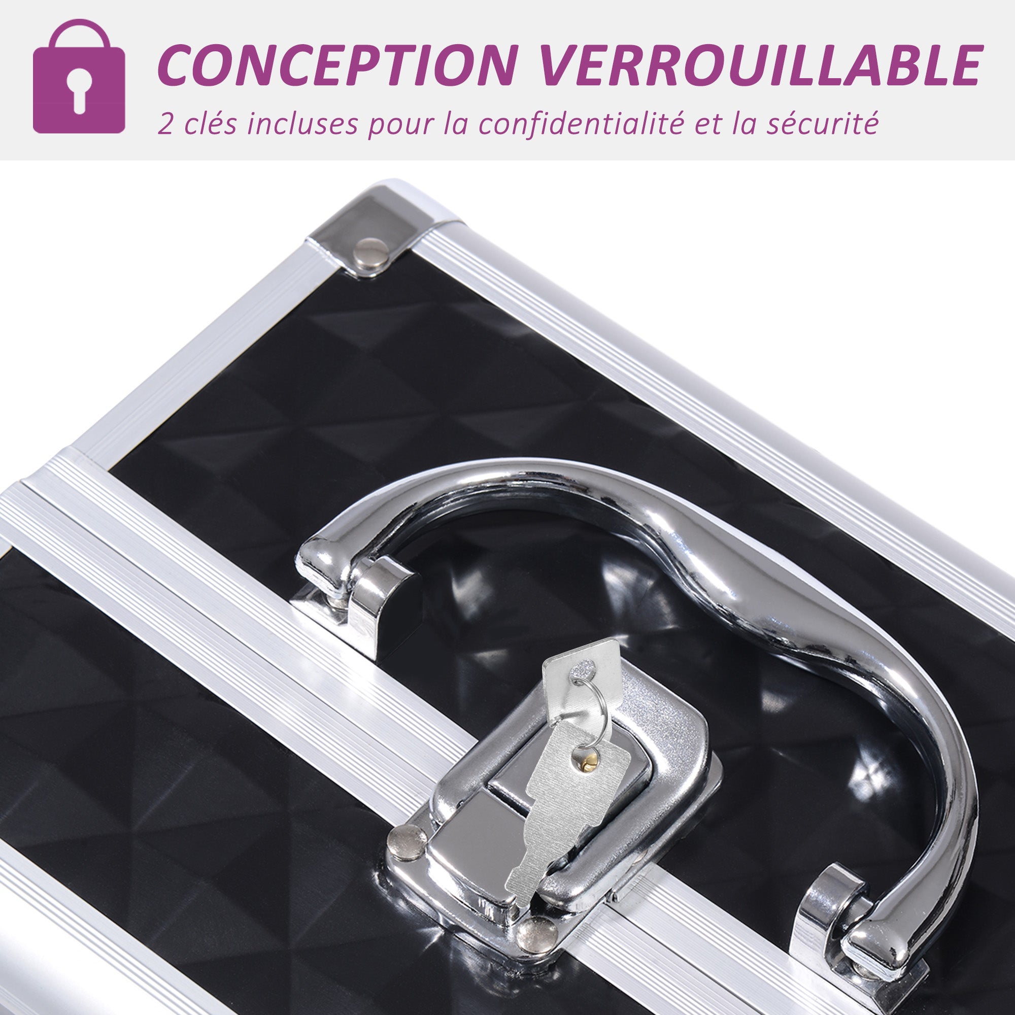 HOMCOM Чанта за грим - Съхранение на козметика - 3-етажна чанта с огледало и заключване с 2 ключа, размери: 20Д x 15Ш x 15В см, Черен
