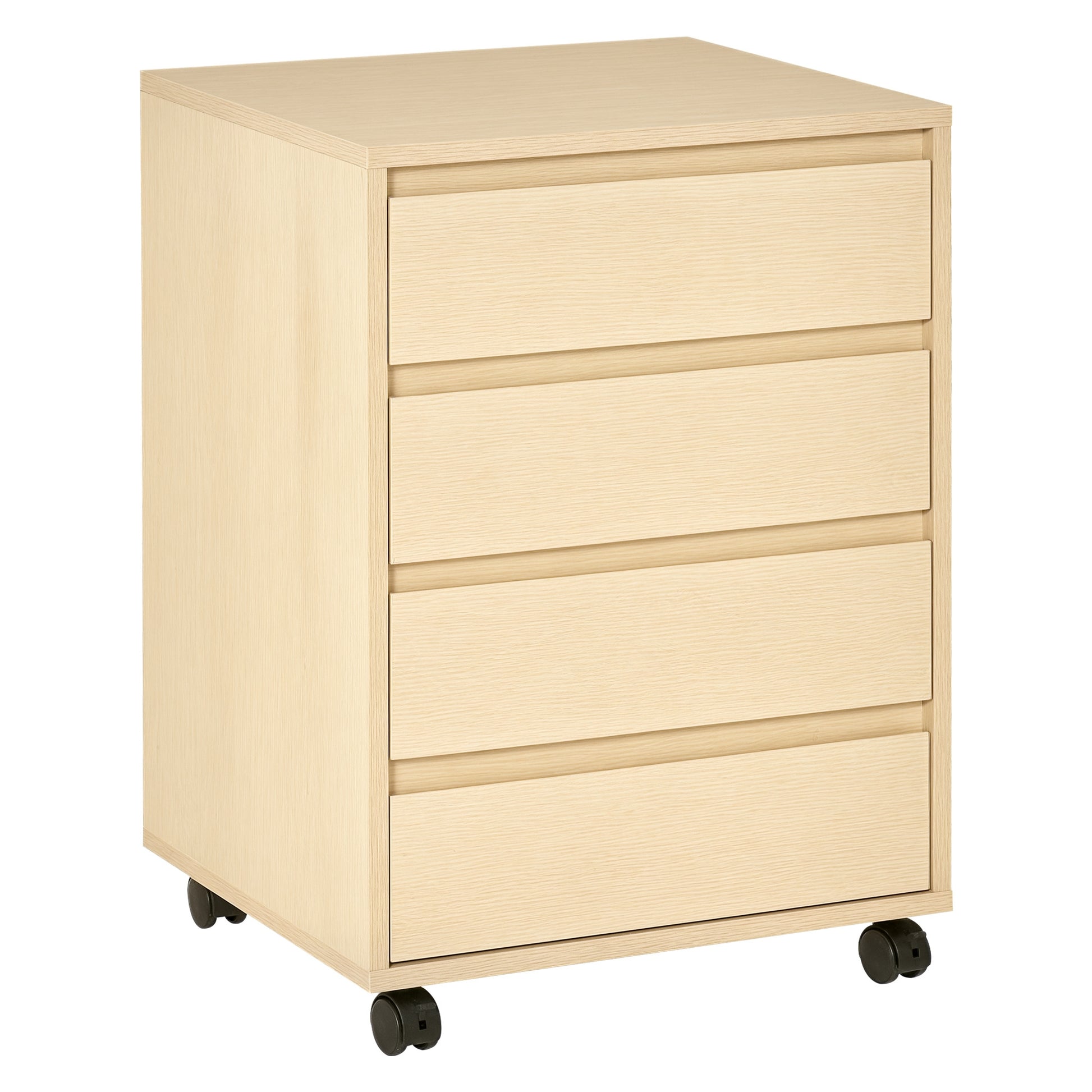 Офисна единица с чекмеджета HOMCOM с 4 чекмеджета, мобилен кабинет с колела, 46x40x65 см