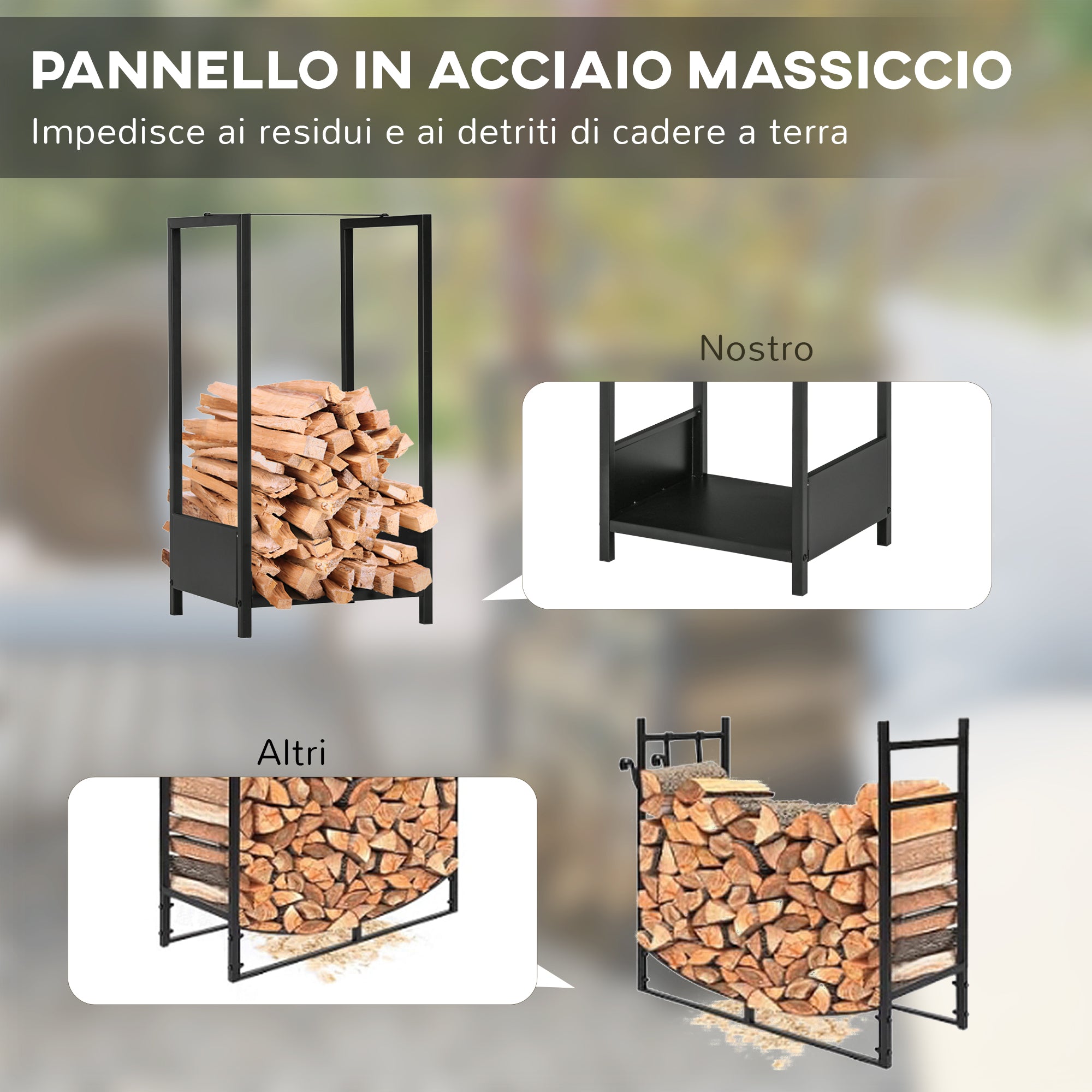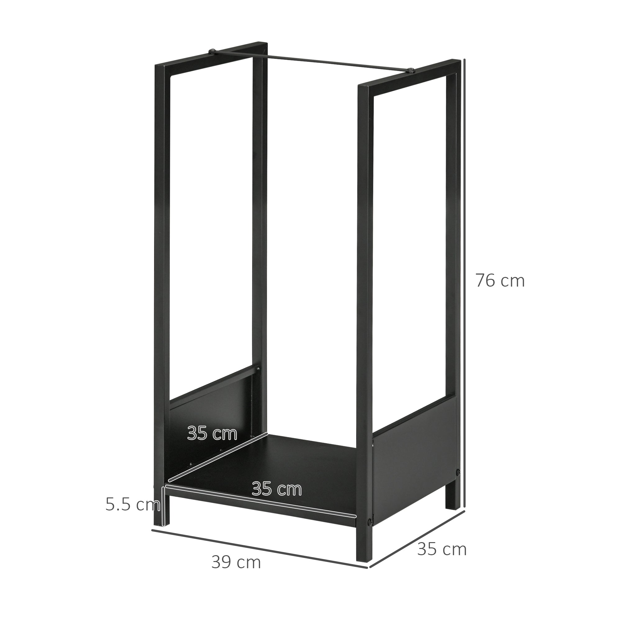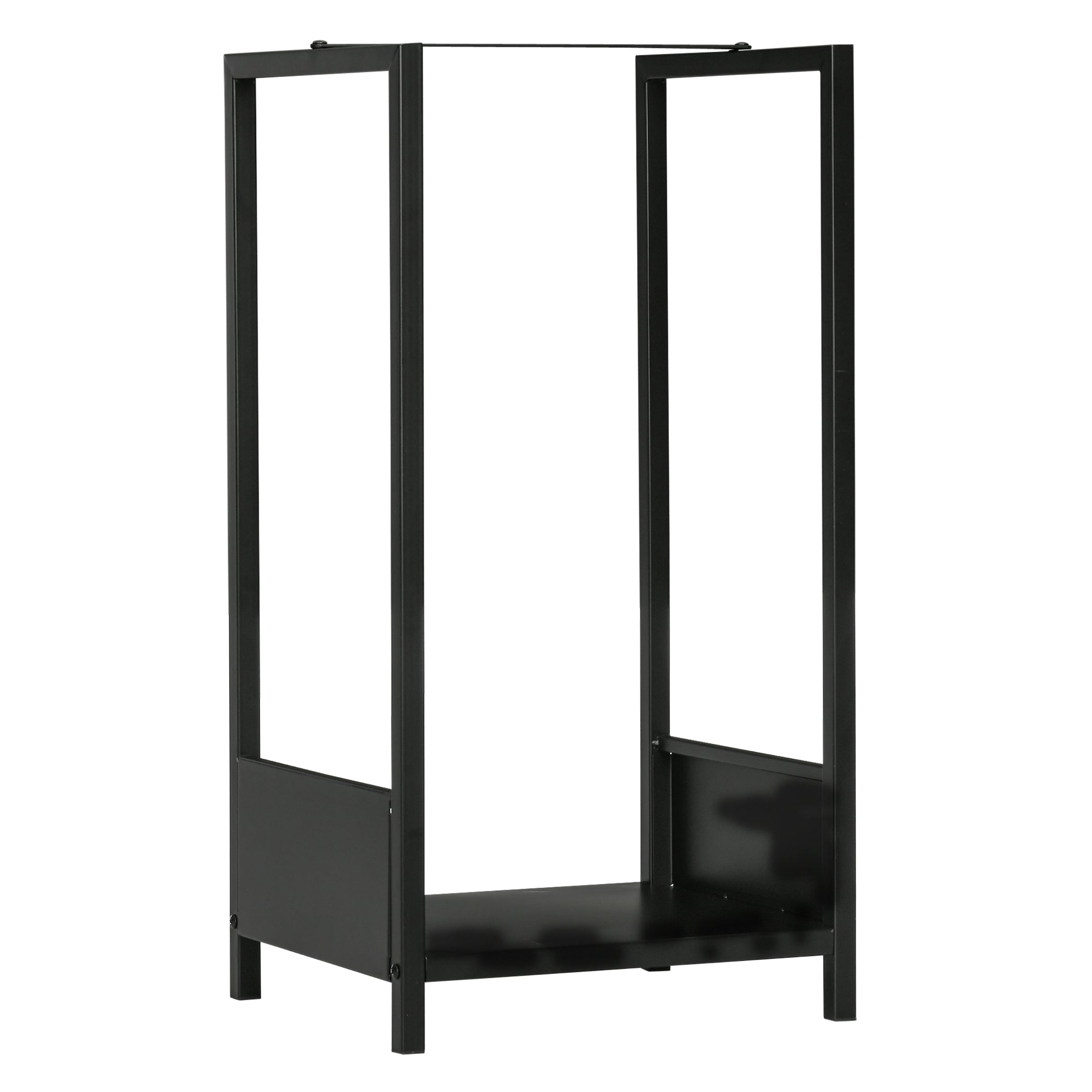 Outsunny Стойка за складиране на дърва за огрев за външна и вътрешна употреба, модерна стойка за дърва с повдигната основа, 39x35x76 см, Черен