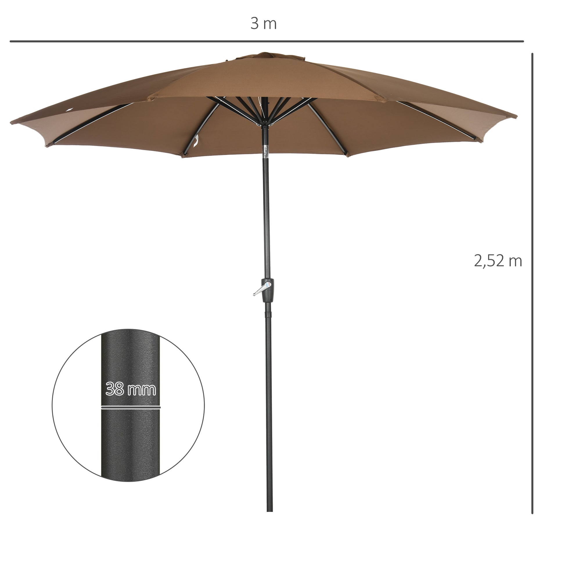 - - ЛЕСЕН ЗА ОТВАРЯНЕ: Много удобен парасол благодарение на механизма за отваряне и затваряне. Механизмът е разположен на стълба за лесна работа и настройка според нуждите ви