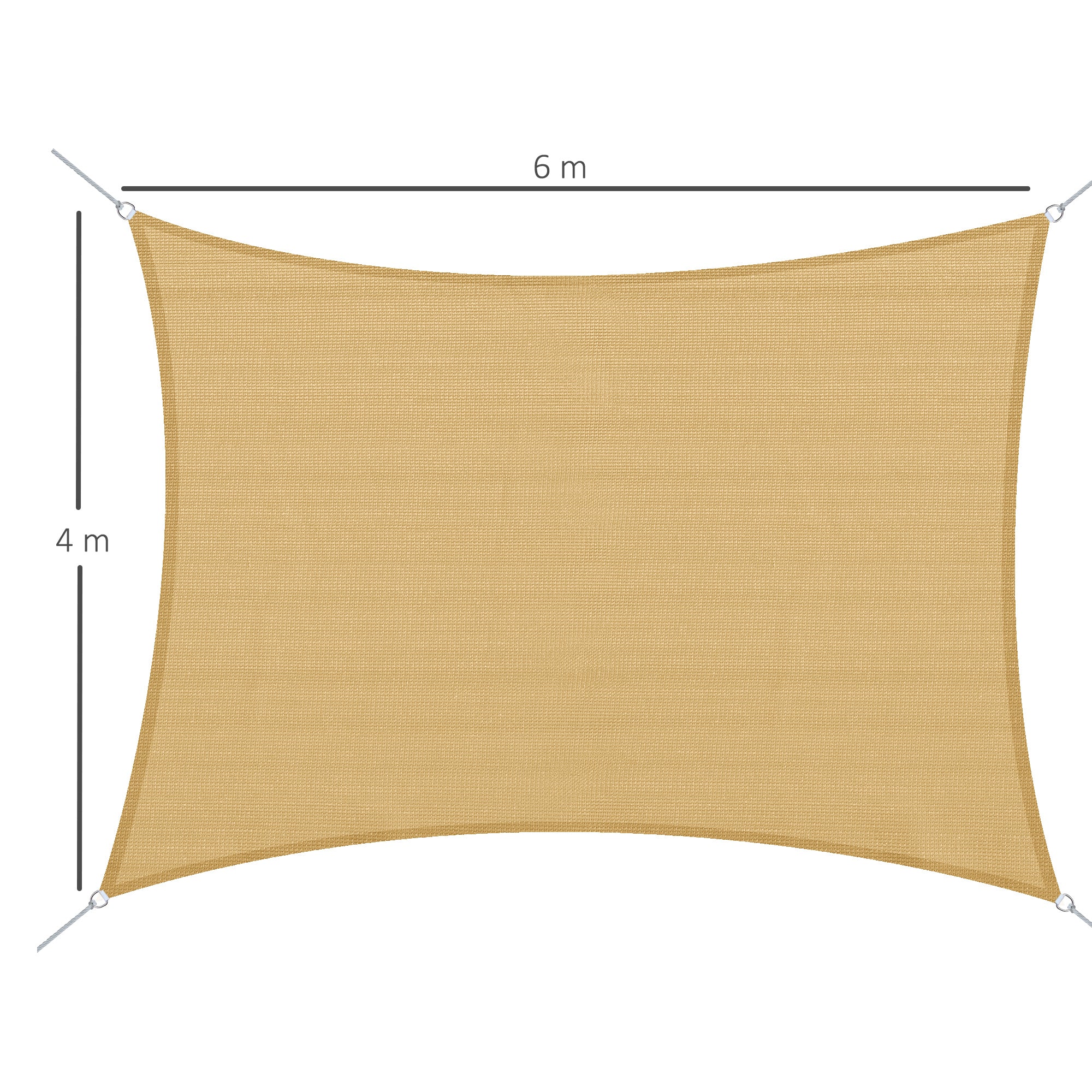 Ректангуларен слънцезащитен плат Outsunny 13x20 фута за тераса с анти-UV стоманено око и найлонови въжета за градина