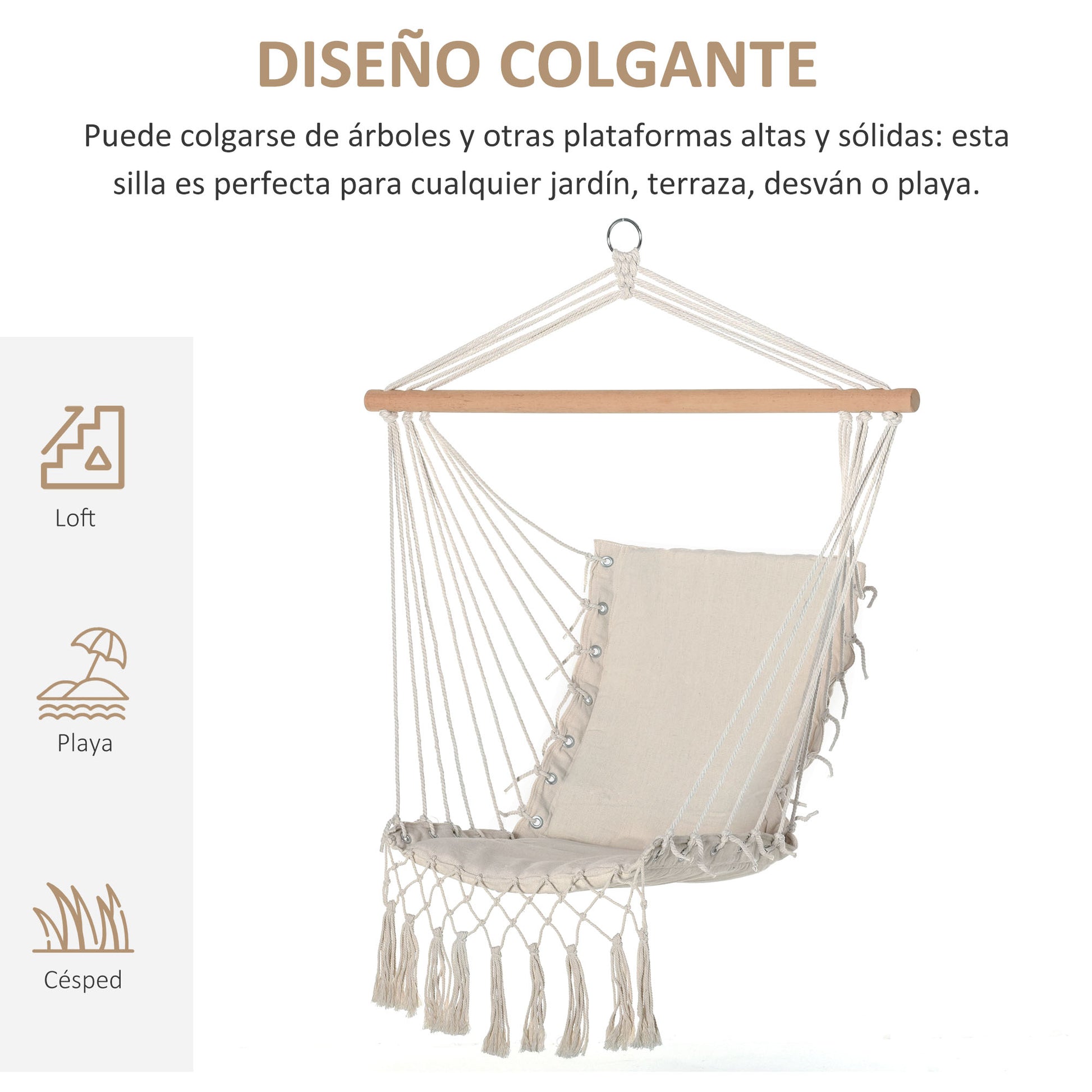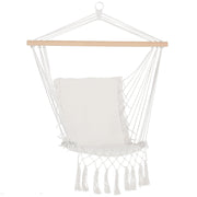 Седалка за окачване Outsunny с ресни от памук, 120 кг товароподемност, съвременен стил за вътрешен и външен интериор, бяла