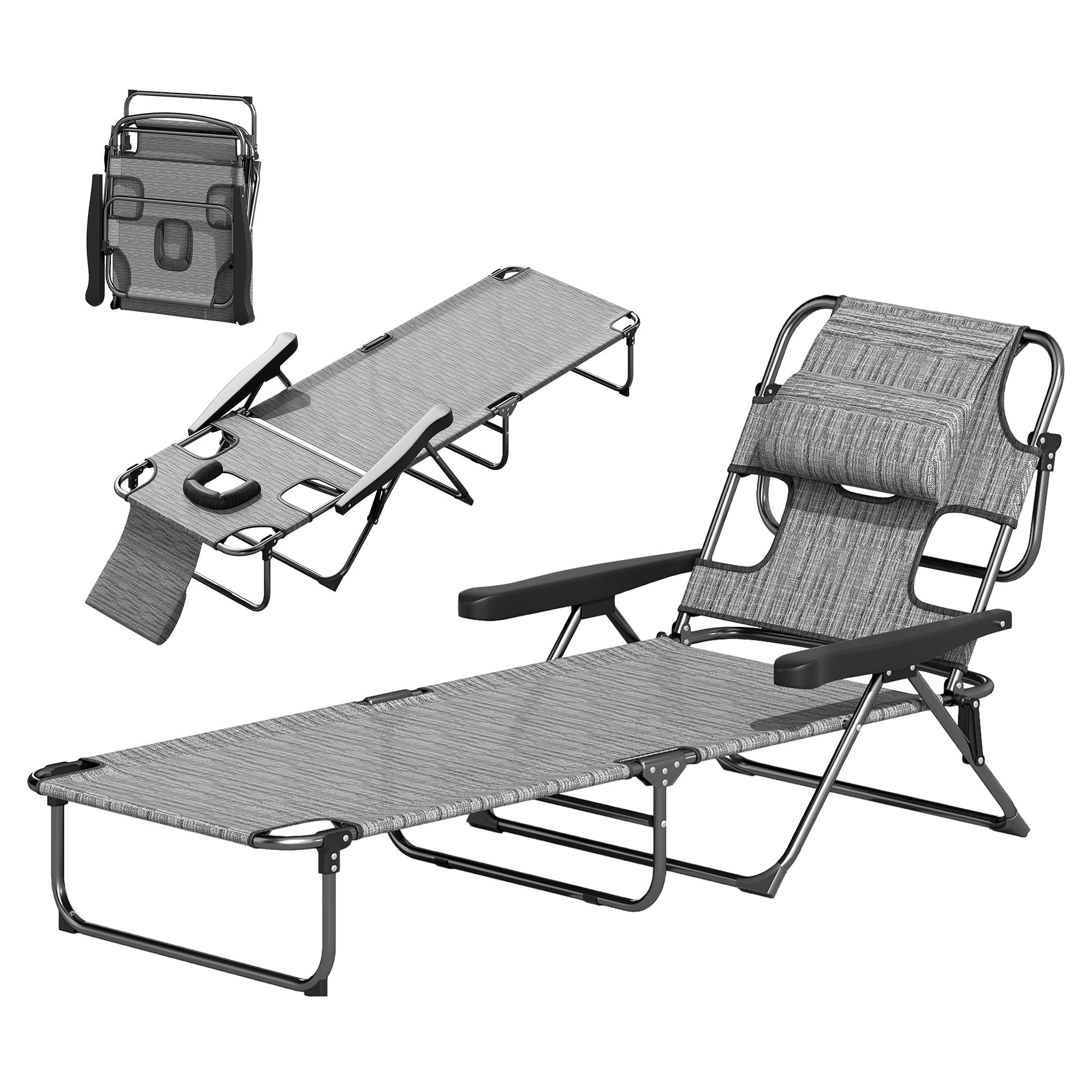 - - Регулируема облегалка: Удобната регулируема облегалка на нашия преносим градински шезлонг ви позволява да изберете от 4 ъгъла на наклон, от седнал до легнал (180°), според вашите нужди