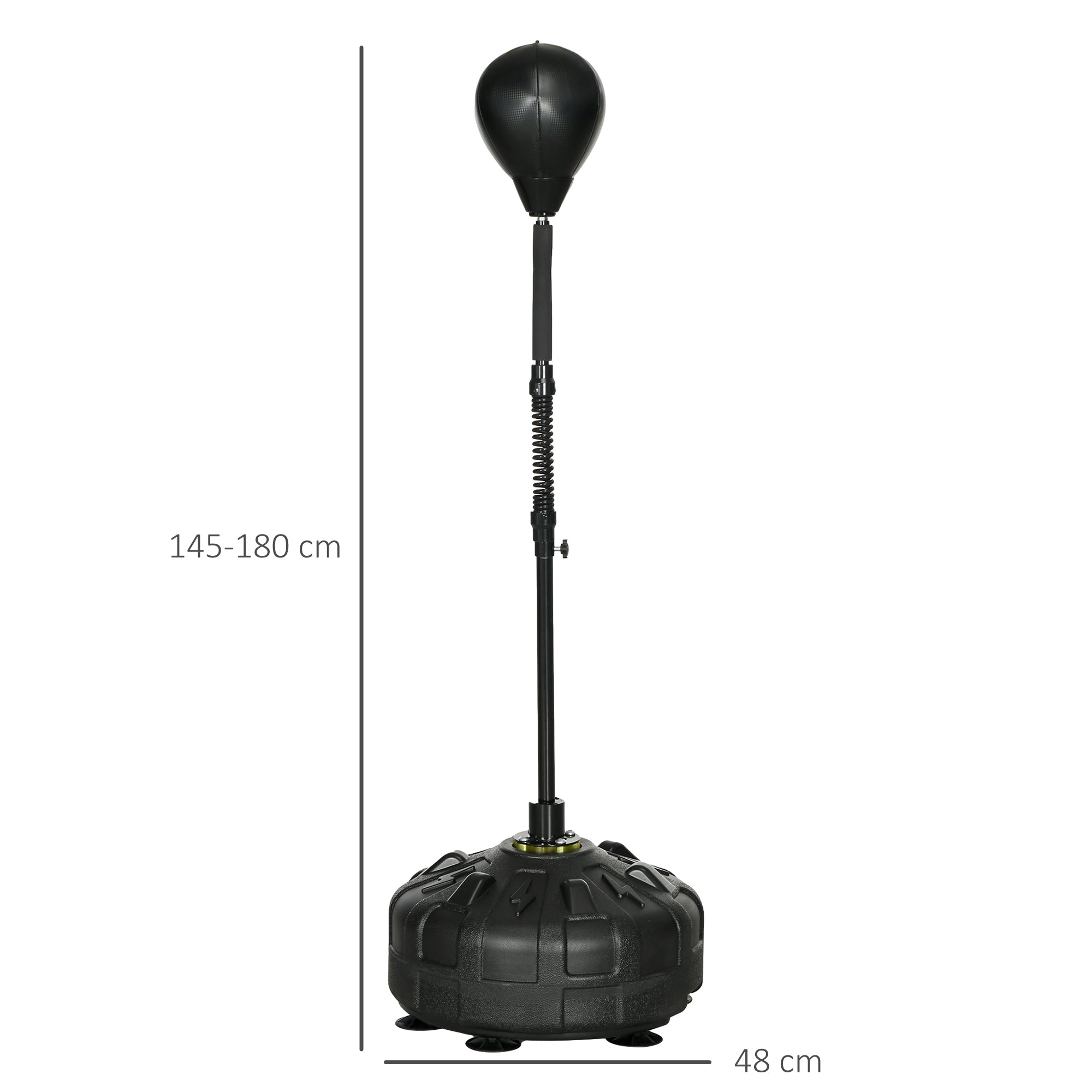 SPORTNOW Боксова Груша, Регулируема височина 145-180 см, Самостоятелна Боксов чанта с вакуумна чаша, Стенден боксова топка, Скоростна топка за тренировка и упражнения, Синтетична кожа, Черен