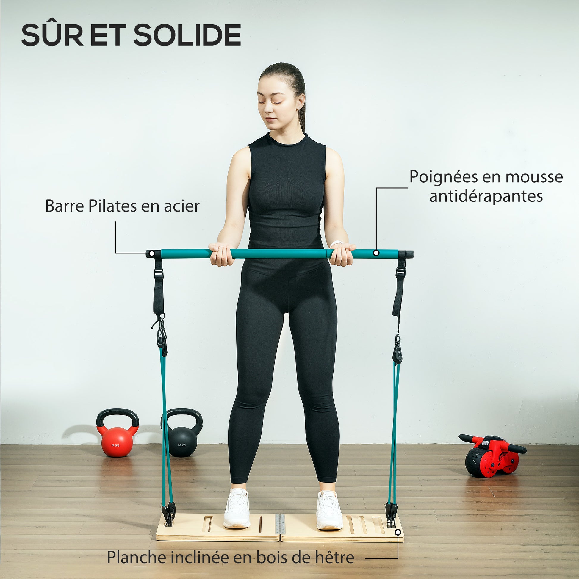 - - ЗДРАВА И НЕХЛЪЗГАЩА ДИЗАЙН: Изработен от стомана, покрита с меки абсорбиращи потта foam материали, нашата пръчка за пилатес осигурява сигурно и удобно сцепление, докато наклонената дървена дъска осигурява допълнителна издръжливост