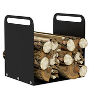 Стойка за дърва Outsunny 36.5 x 30 x 36 см с дръжки, вътрешна и външна стойка за дърва, до 30 кг, стомана, черна