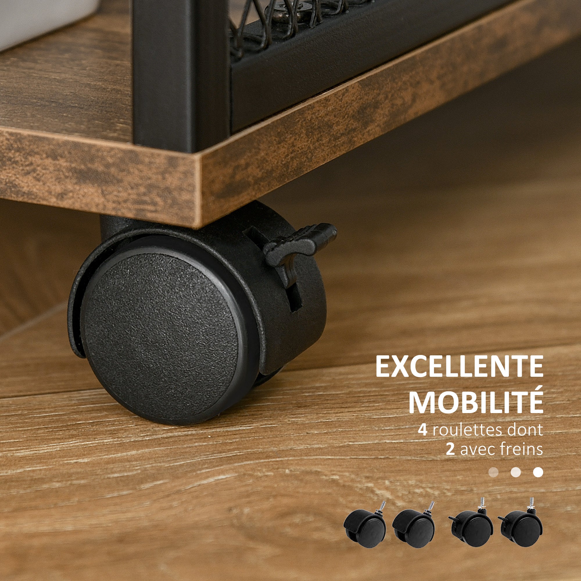 HOMCOM Kancelářský držák dokumentů s 4 kolečky, otevřenou policí a 2 zásuvkami, dřevěná a kovová kancelářská skříň, 40x35x60 cm, Hnědá a černá