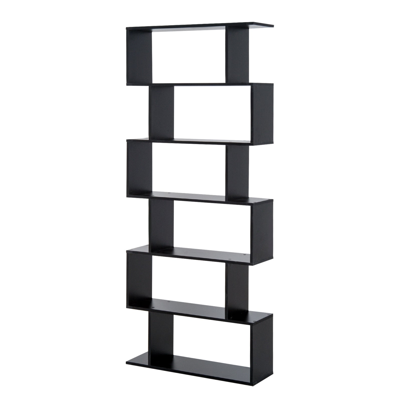 HOMCOM Moderní Knihovna se 6 Policemi pro Jídelnu, Obývací Pokoj a Kancelář 80x23x192 cm Černá