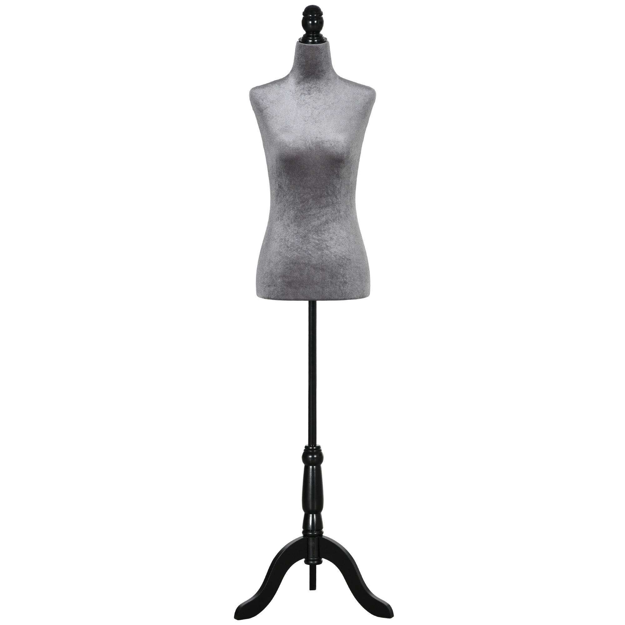 HOMCOM Dámský šicí manekýn nastavitelný 130-168 cm s dřevěným stativem pro fotografii módy a vystavování oděvů v šedé barvě