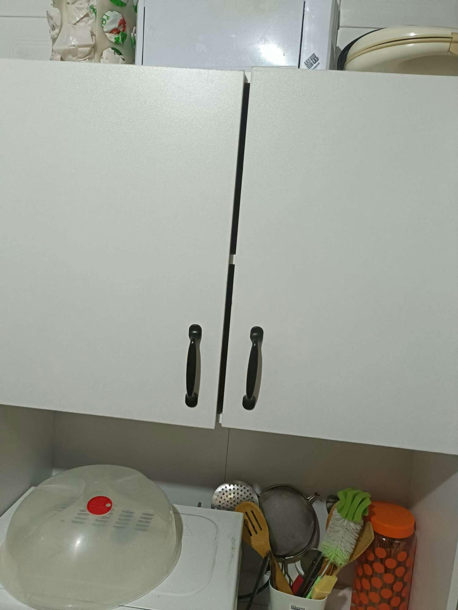 - - NASTAVITELNÉ POLICE A OTÁČECÍ DVÍŘKA: Horní a dolní pravé skříně mají nastavitelnou poličku uvnitř. A dolní pravá skříň má otáčecí dveře s pneumatickým pantem pro snadné otevírání a zavírání.