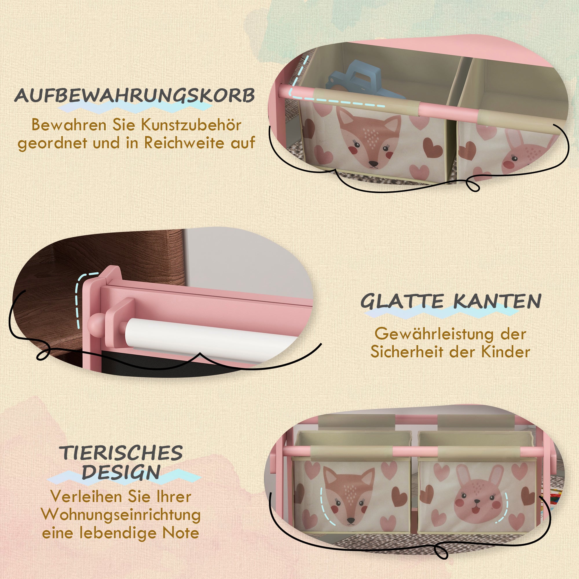 - - Úložné koše: Součástí jsou dva koše, které poskytují pohodlný úložný prostor pro umělecké potřeby. Zajišťují pohodlí a organizaci v kreativním koutku vašeho dítěte a usnadňují úklid.