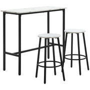 HOMCOM 3-dílná souprava z lamina, MDF a oceli se čtvercovým stolem a 2 barovými židlemi pro obývací a jídelní pokoj, bílá a černá