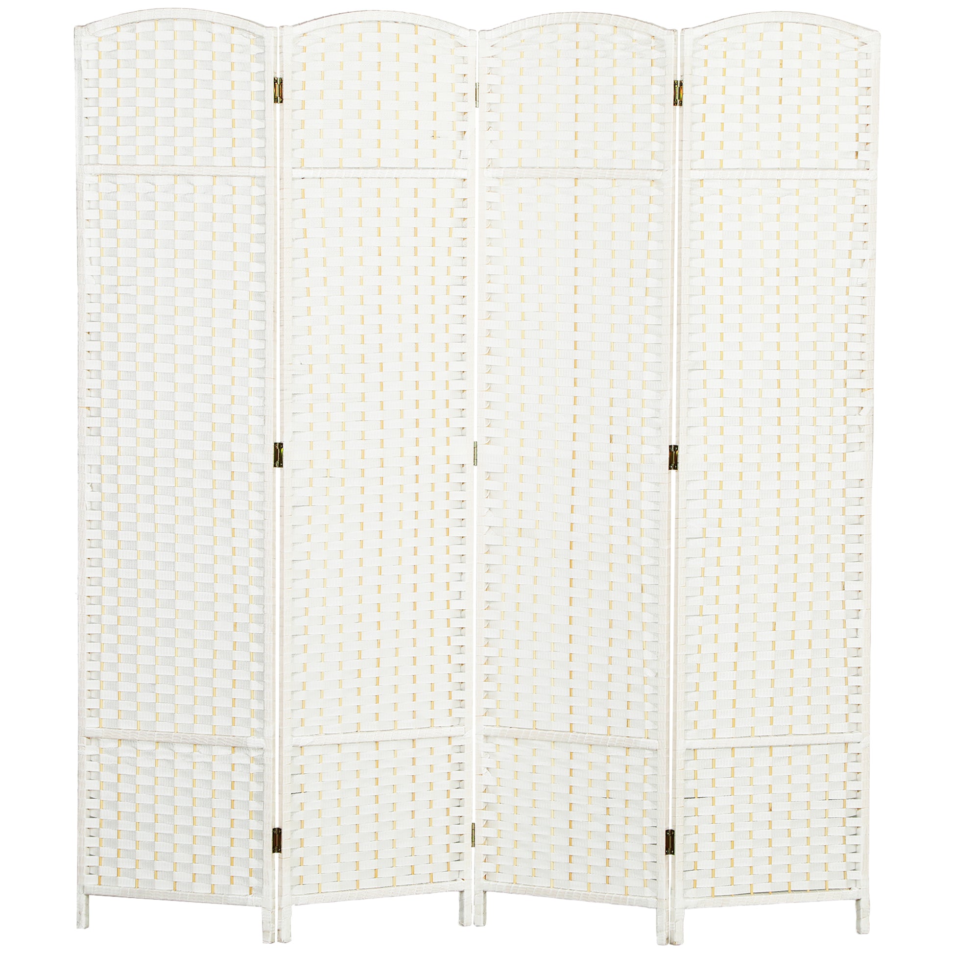 HOMCOM 4-panelový Rozdělovací Panel 160 x 170 cm Bambusový Skládací Předěl na Soukromí pro Obývací Pokoj Bílý