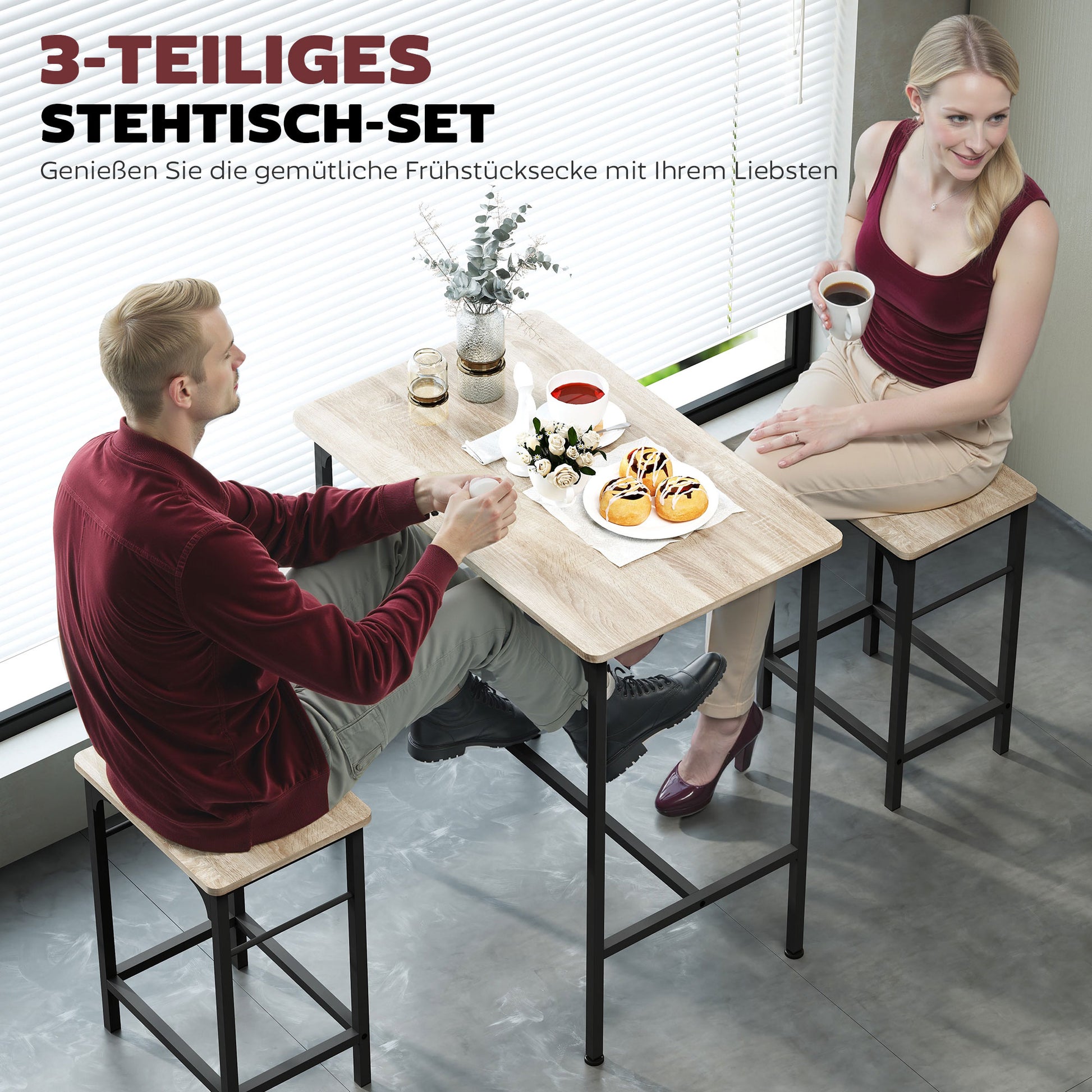 HOMCOM Barový stůl a židle Sada barového stolu se 2 židlemi pro jídelnu s protiskluzovými nožičkami Do kuchyně, Přírodní dřevo