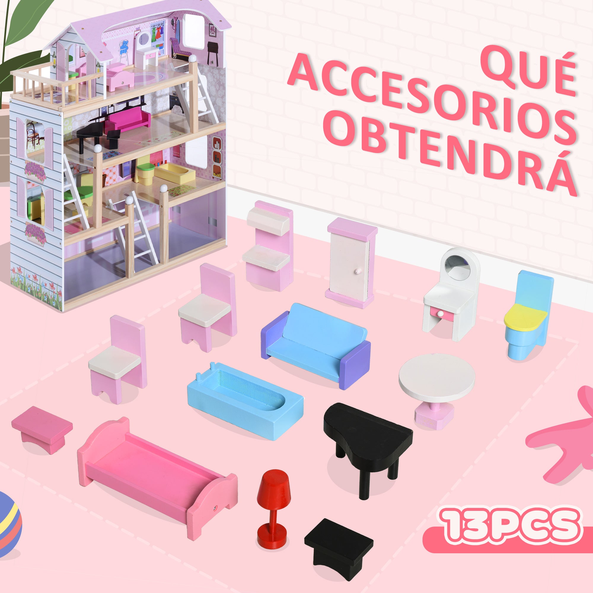 - - SE 13 DOPLŇKY V CENĚ: Tento dřevěný domeček přichází s několika doplňky, které simulují miniaturní nábytek a předměty, jako je stůl, židle, postel, vana, pohovka, klavír, skříň a další