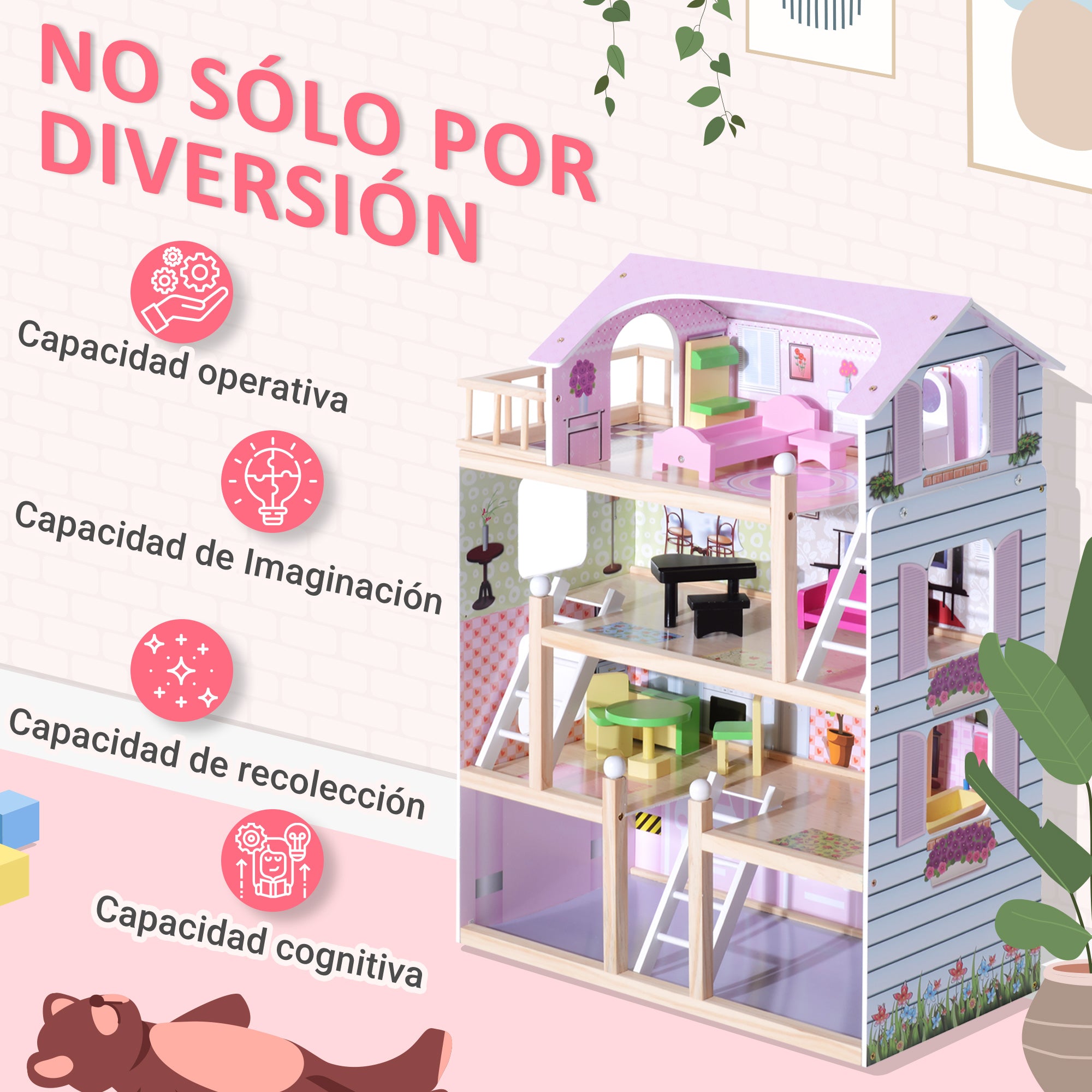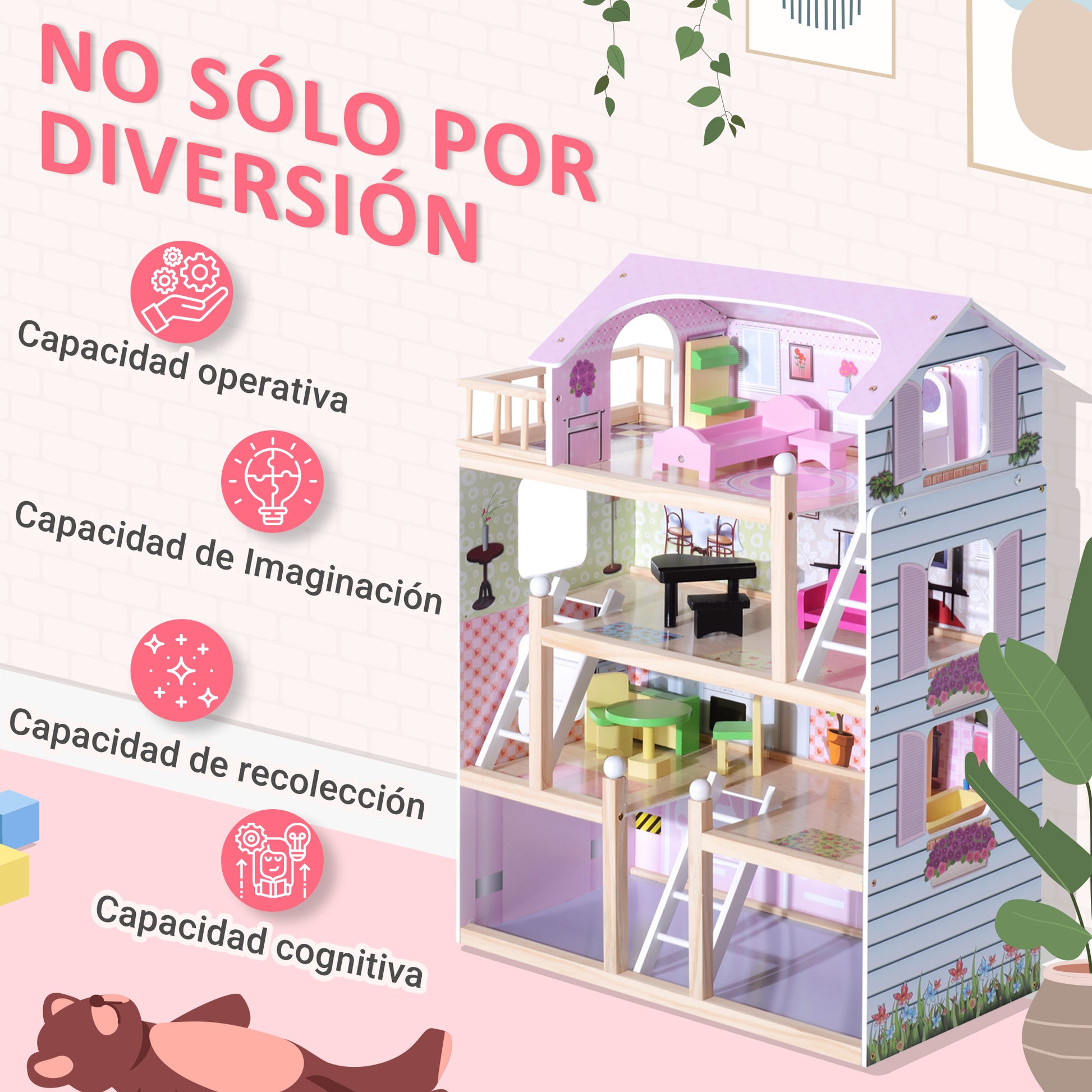- - REALISTICKÝ DOMEČEK: Krásný čtyřpatrový dřevěný domeček. Kombinace barev, mnoho detailů a pečlivý design dodává domečku velký realismus, který potěší děti i dospělé