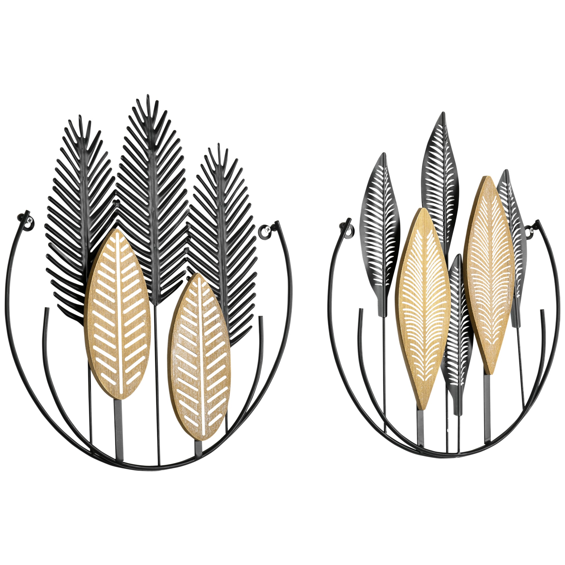 HOMCOM Kovová Nástěnná Dekorace 2 Kusy 3D Nástěnné Umění Listy Kovový Obraz pro Domov, Obývací Pokoj, Ložnici, 40 x 46 cm