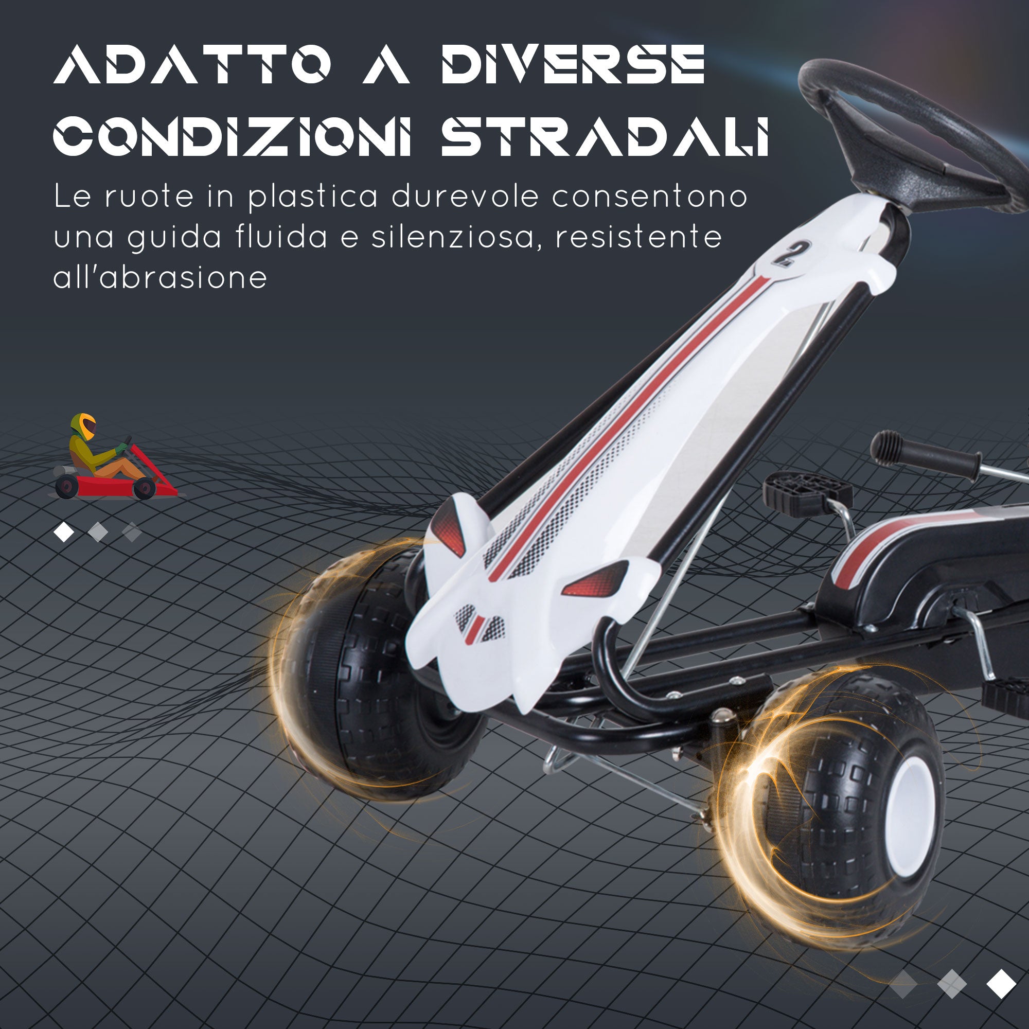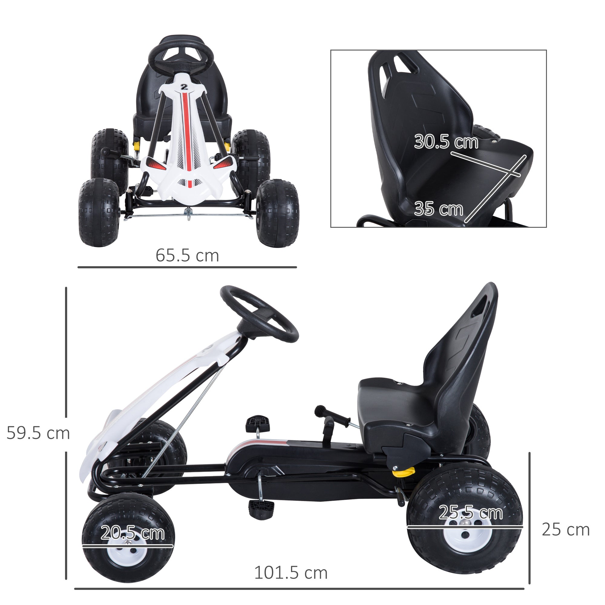 HOMCOM pedálový go-kart pro děti 3-6 let s nastavitelným sedadlem, brzdou a spojkou, go-kart s protiskluzovými koly, 101,5x65,5x59,5 cm, bílý a černý