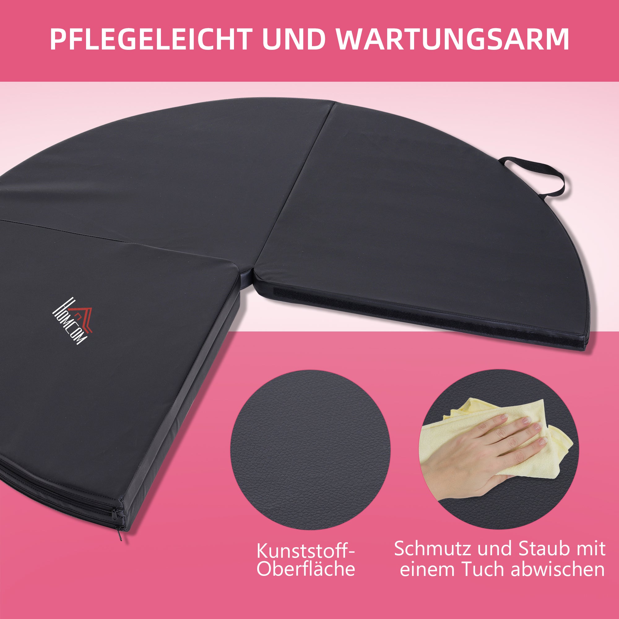 HOMCOM Podložka na tanec s tyčí, Ø 150cm Bezpečnostní podložka na tanec s tyčí, 5 cm silná podložka, Skládací bezpečnostní podložka, Přenosná fitness podložka, Tlumení nárazů, Gymnastika, Jóga, Černá