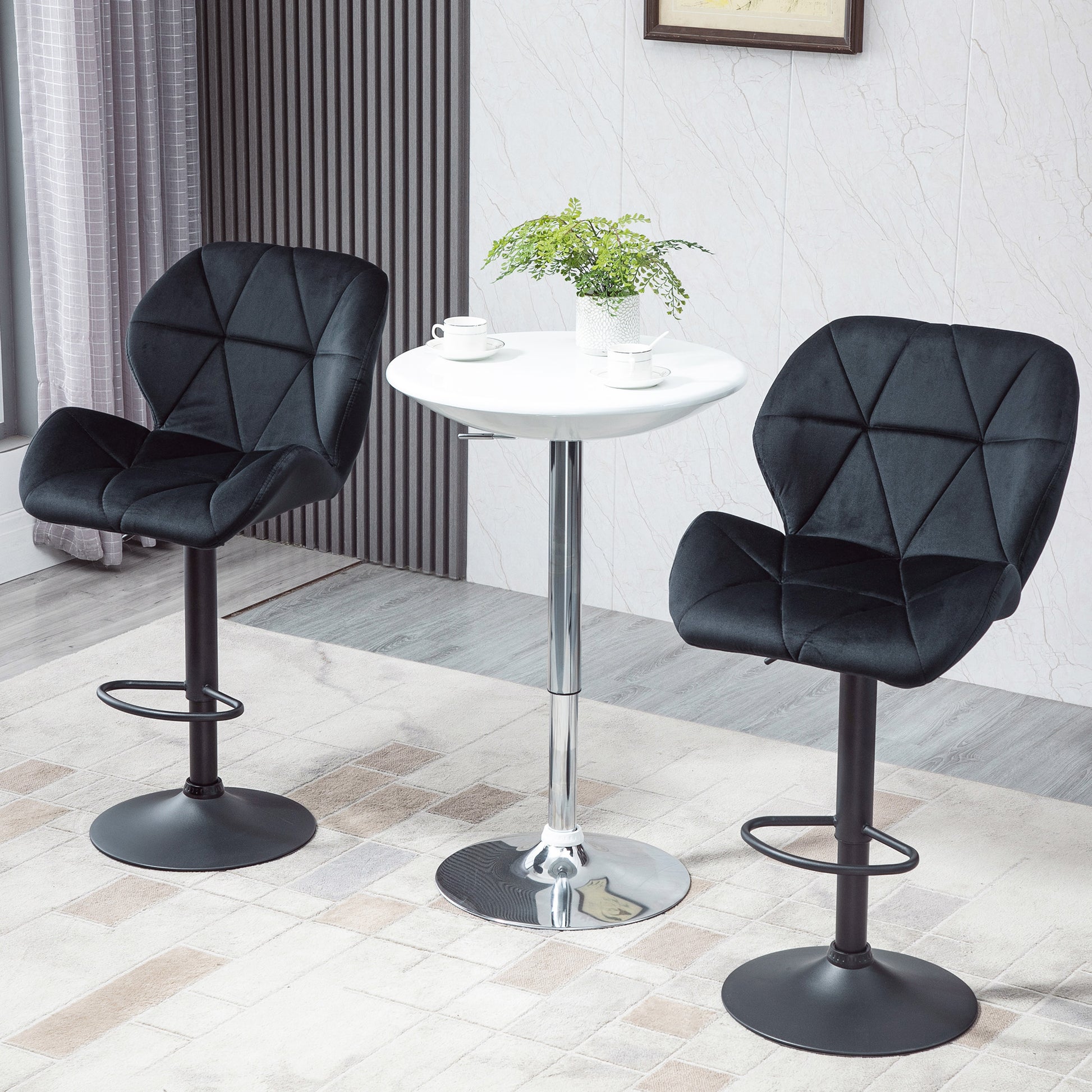 HOMCOM Sada 2 Barových Židlí S Otočným Sedadlem a Opěrkou, Výškově Nastavitelná Bistro Židle, Barová Židle, Sametová, Bez Rukávu, Černá, 51.5x 57.5 x 93-114.5 cm