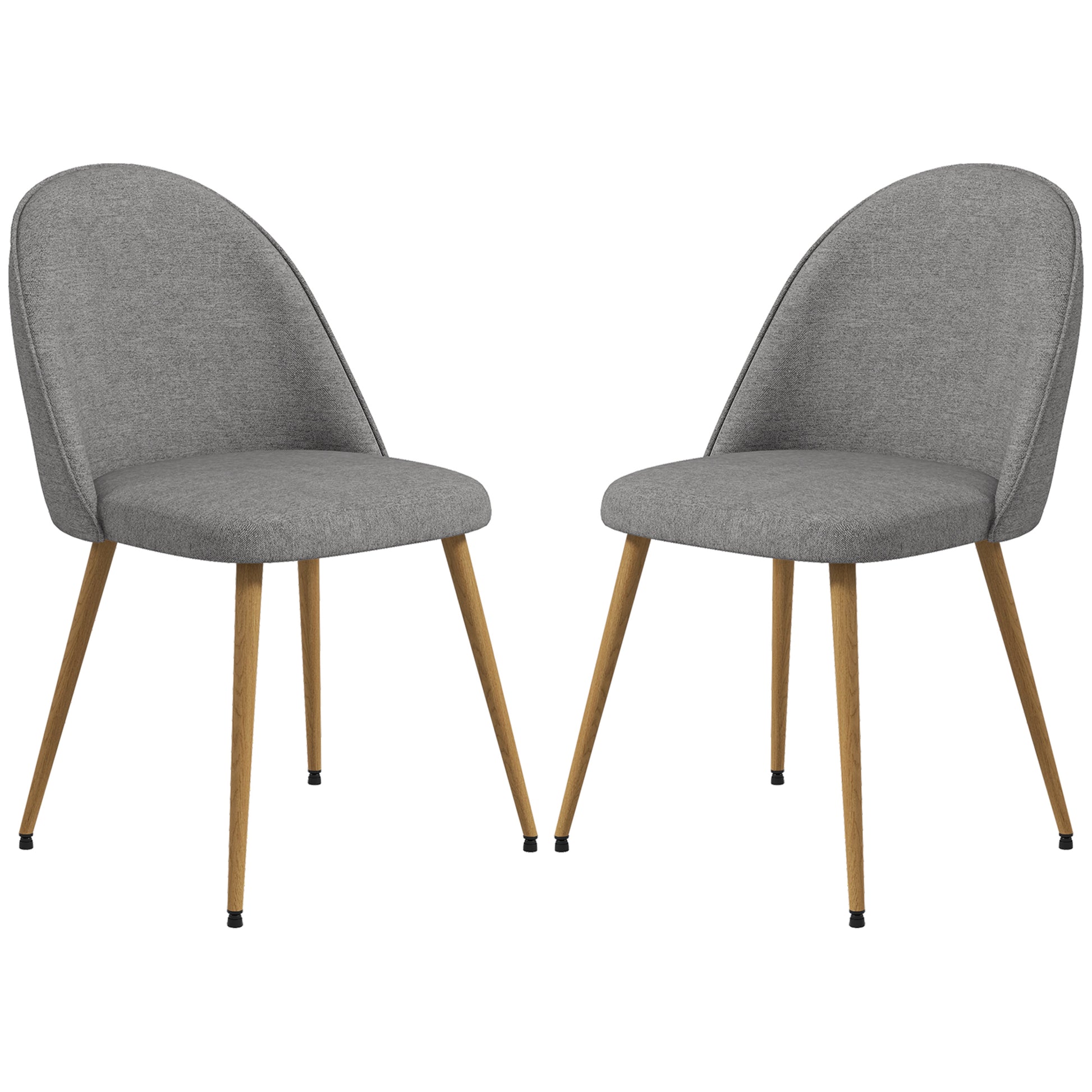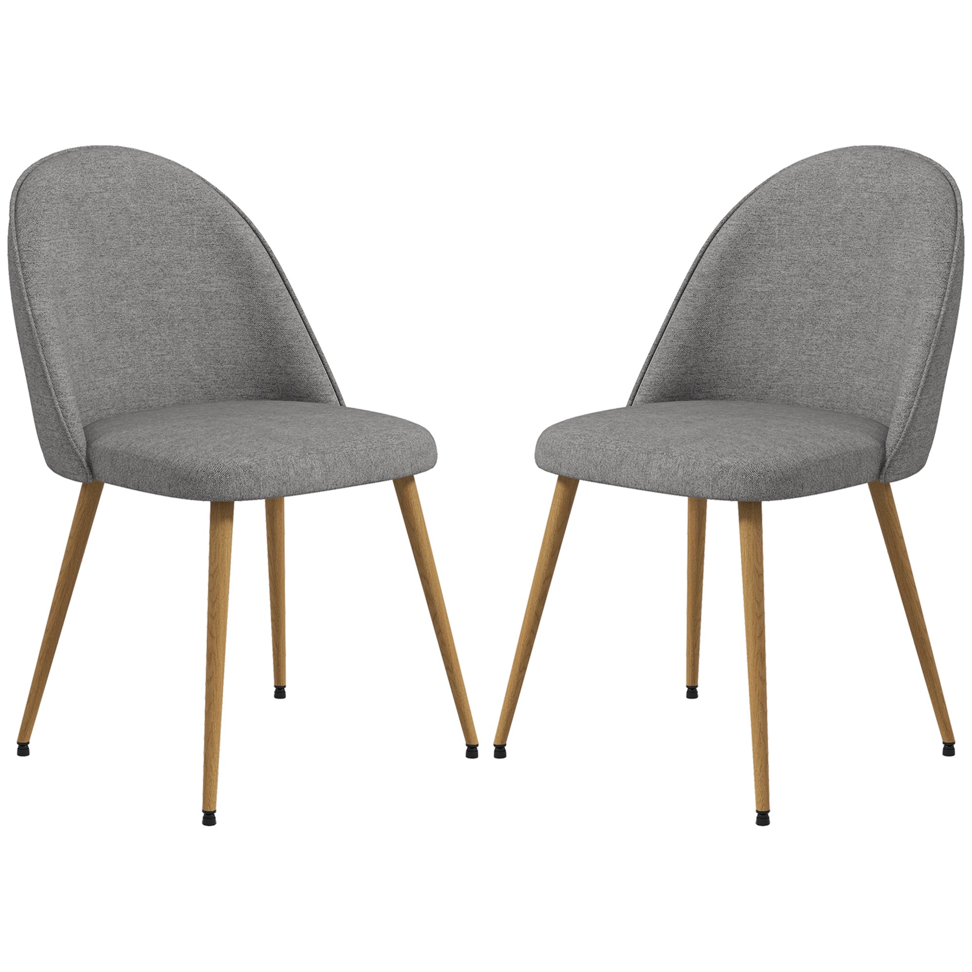 HOMCOM Sada 2 jídelních židlí, čalouněné kuchyňské židle s lněnou tkaninou a ocelovými nohami, moderní styl do obývacího pokoje či ložnice, nosnost 120 kg, 50x52x83 cm, šedé