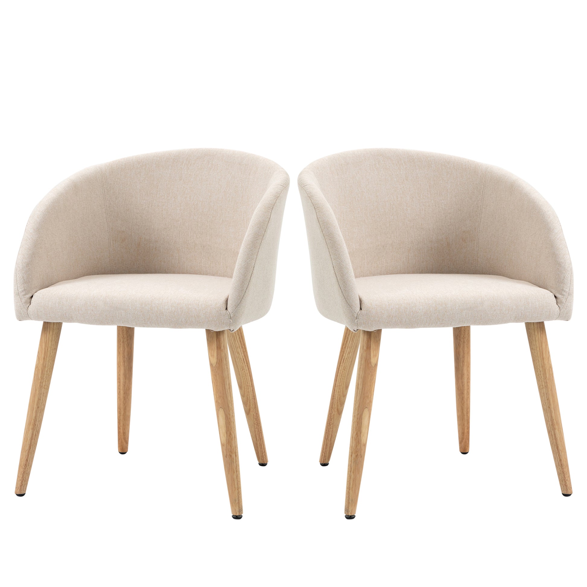 HOMCOM Sada 2 jídelních židlí - Skandinávský design - Zúžené skloněné nohy z kaučukového dřeva - Ergonomický potah s opěradlem a područkami v lnu béžové barvy