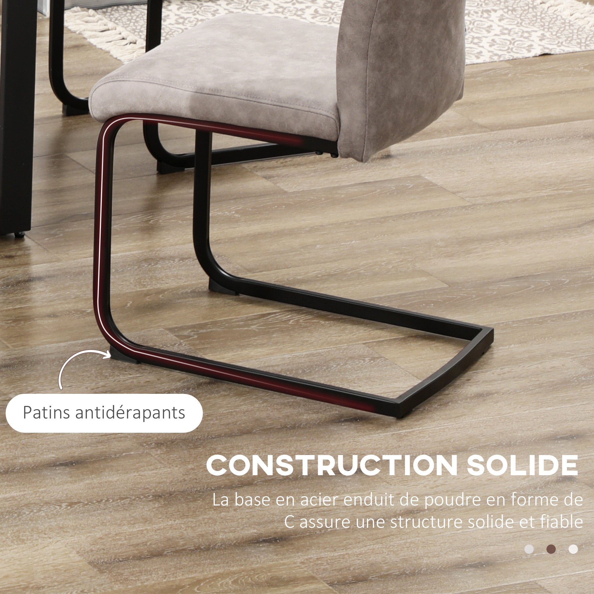 HOMCOM Sada 4 jídelních židlí s mikrovláknovou potahem, ocelovými lyžařskými nohami a madlem, s šedým opěradlem