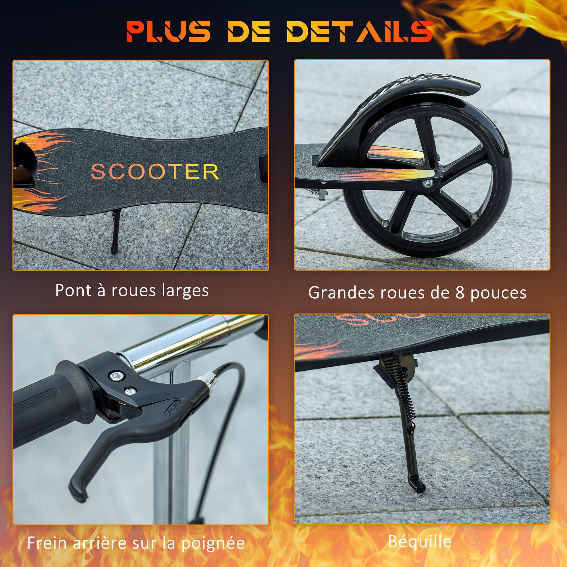 HOMCOM Skládací Koloběžka pro Děti ve Věku 7-14 Let s Nastavitelným Řídítkem ve 3 Úrovních a Dvojitou Brzdou - Černá