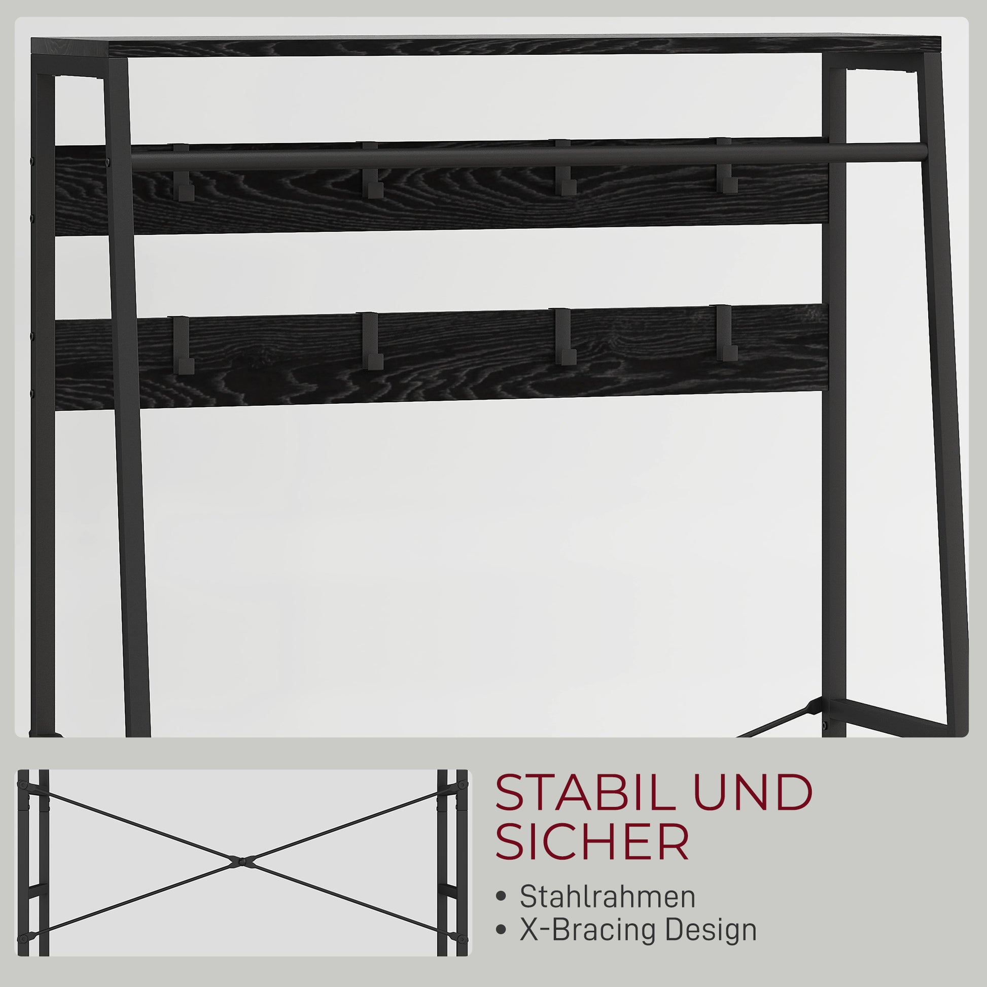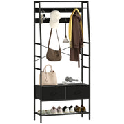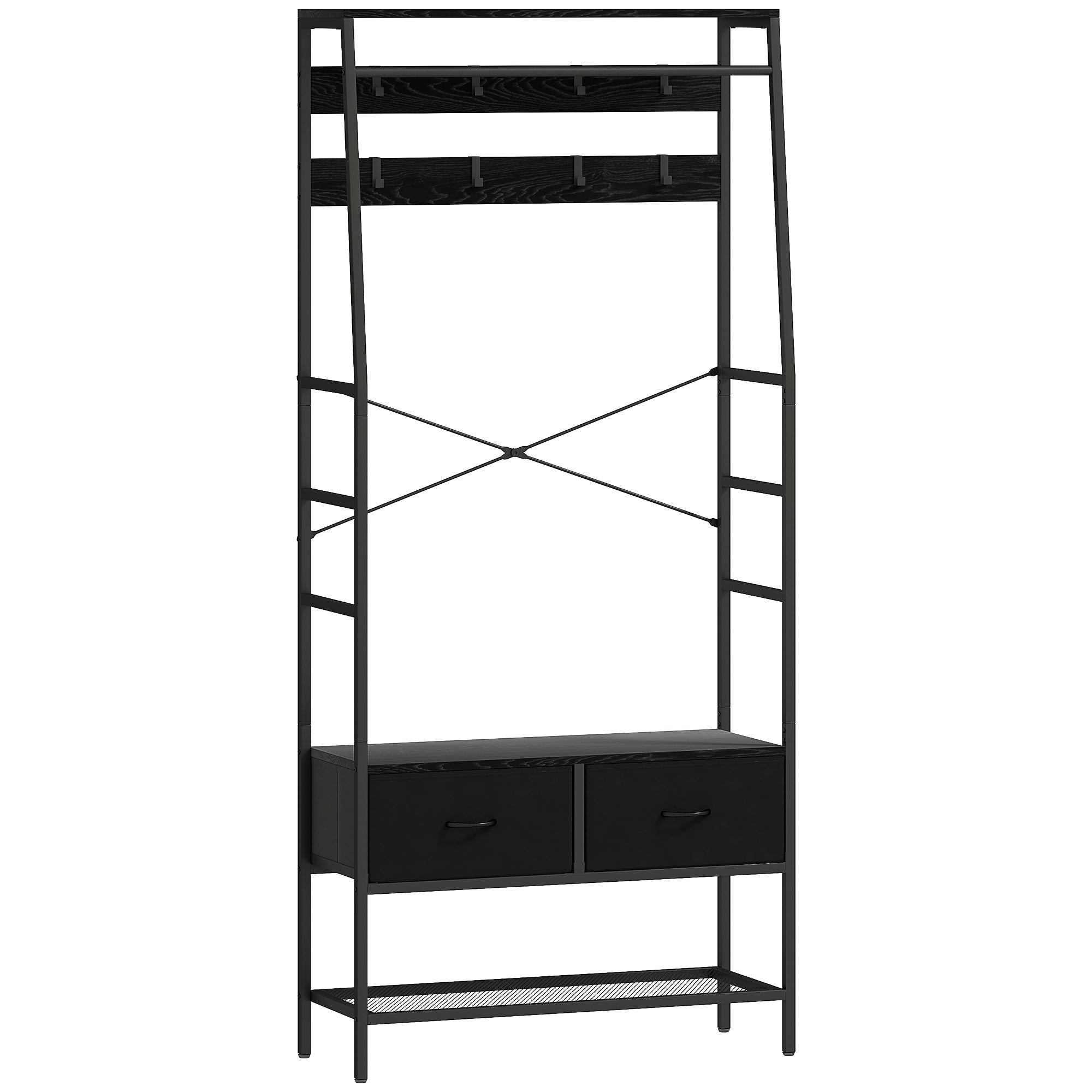 HOMCOM Stojan na kabáty, odkládací tyč na oblečení se stojanem na boty, 2 textilní zásuvky, háček na kabáty s 8 háčky, police, stojan na kabáty s ochranou proti převržení, do předsíně, chodby, ložnice, černý