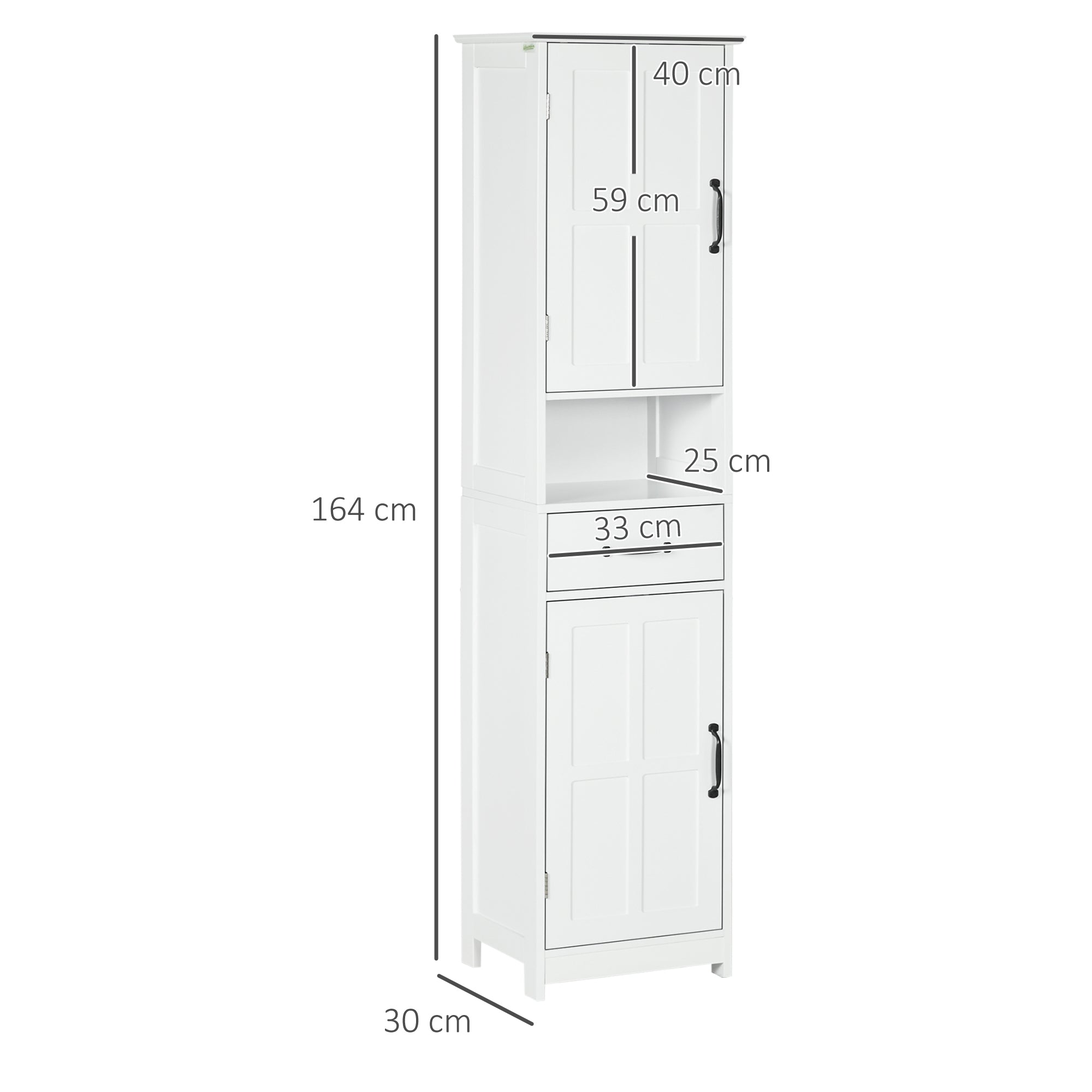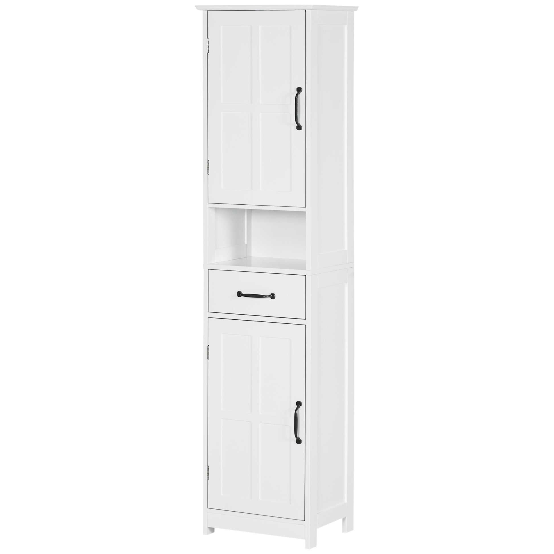 Kleankin koupelnová skříňka s 2 dveřmi, 1 zásuvkou a otevřenou policí, nastavitelné protiskluzové police 40x30x164 cm Bílá