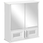 Kleankin Zrcadlová Skříňka do Koupelny - Zrcadlová Skříňka - Úložný Skříňka na Toaletu - 4 Dveře, Polička - Bílý MDF Sklo